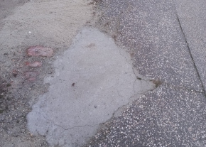 A Csantavéri utca 9 szám előtt az aszfalt széle töredezett.