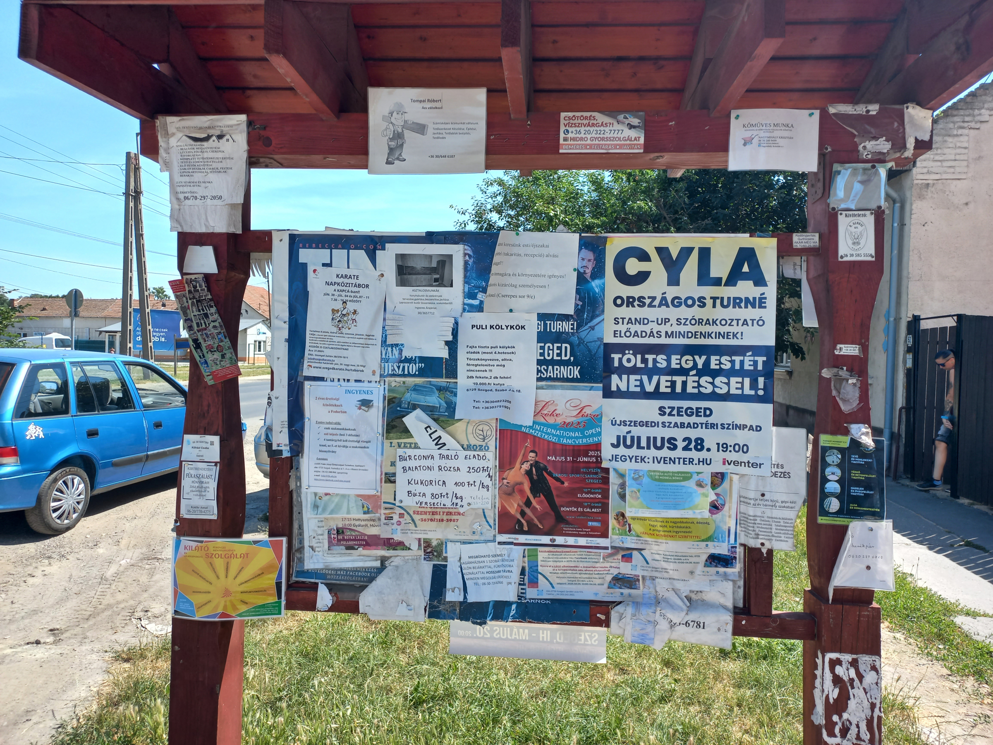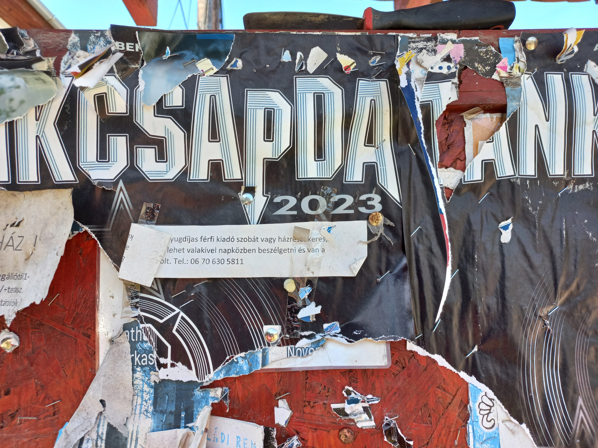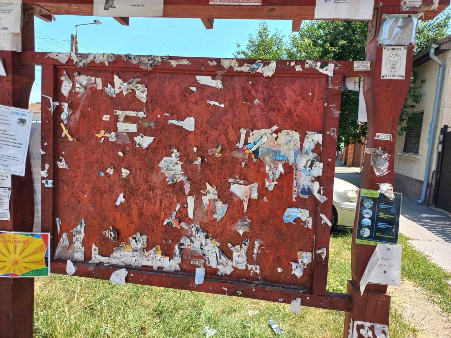 A Szabadkai út 54 szám előtti hirdetőtáblára rendszeresen tesznek ki hirdetéseket, plakátokat, de miután lejár az adott hirdetés ideje, nem veszik le.