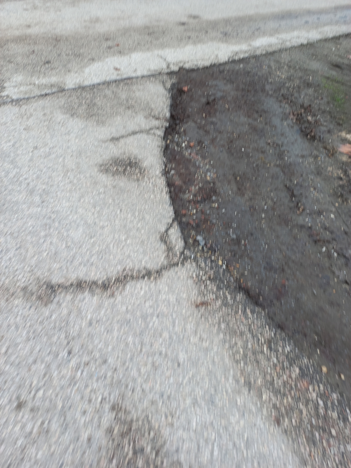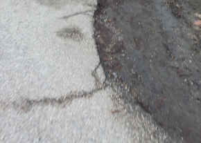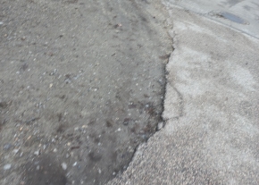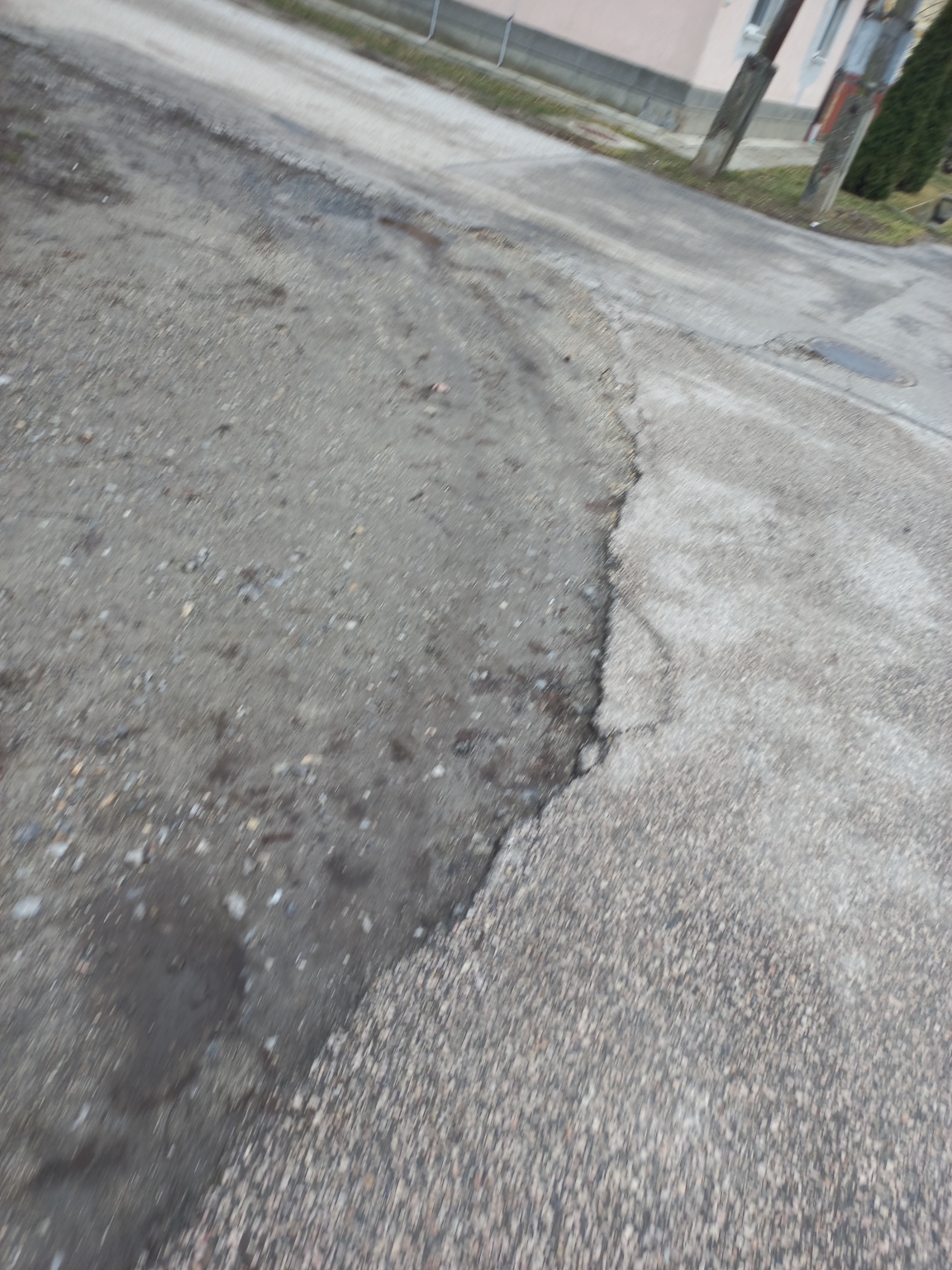 Az aszfalt széle repedezett, törött