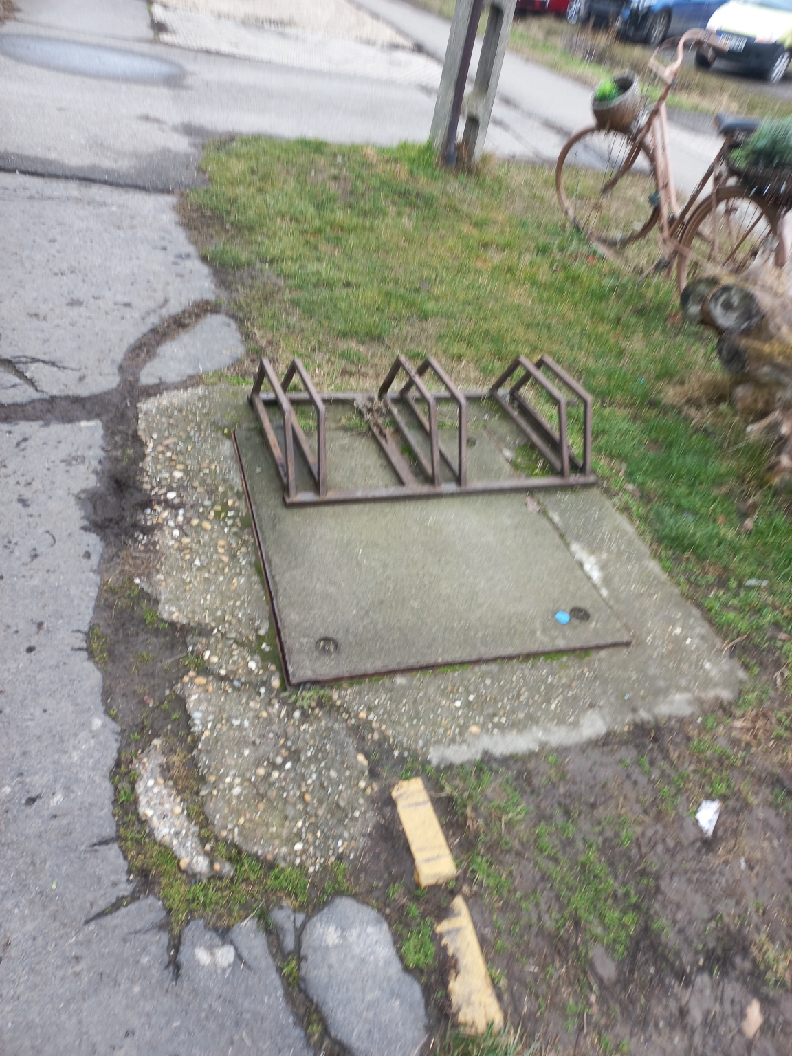 Szegeden, a Szabadkai út 39 szám előtti közműakna kerete nagyon rossz állapotú.
