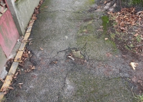Szegeden, az Újvidéki utcában a járda teljes hosszában katasztrófális állapotban van: a fák gyökereitől felpúposodott, töredezett.