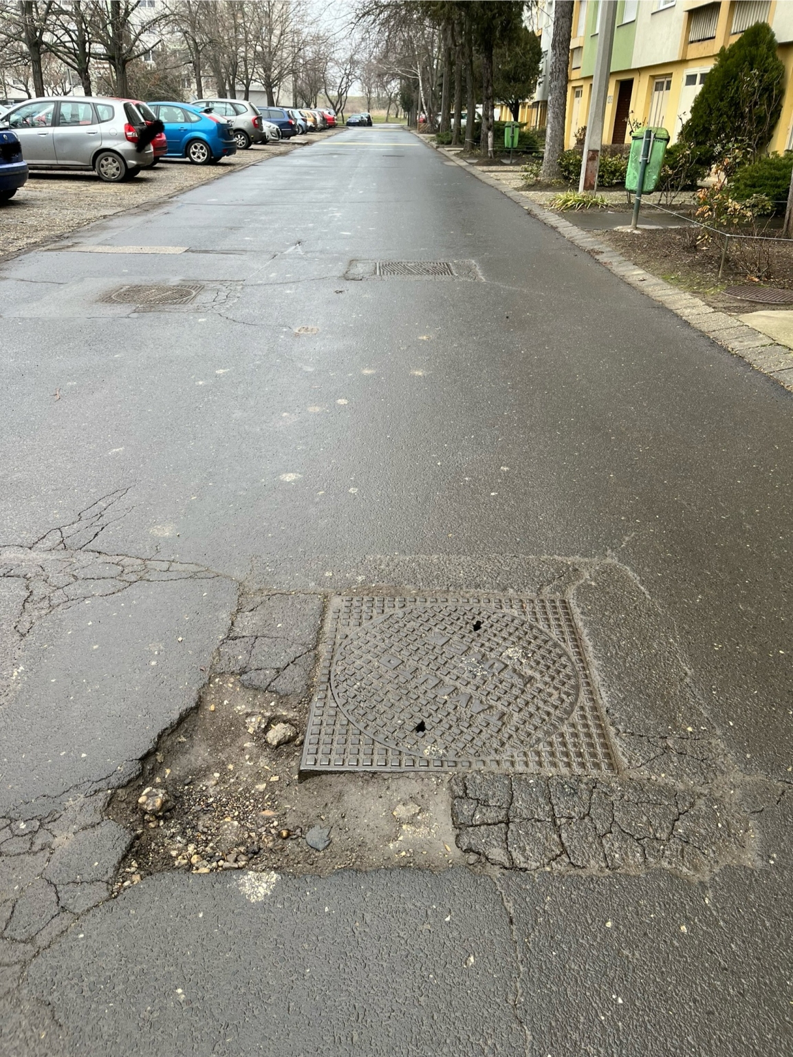A visszajelzéssel ellentétben ez a bejelentés nem lett megoldva, most jártam ott. Az ettől pár méterre lévő aknafedőnél valóban javították korábban a kátyút, de az egy másik bejelentés tárgya volt. Ott az visszaigazolásra is került. Kérem a bejelentés állapotát eszerint visszaállítani, és az illetékest a javítás elvégzésére.