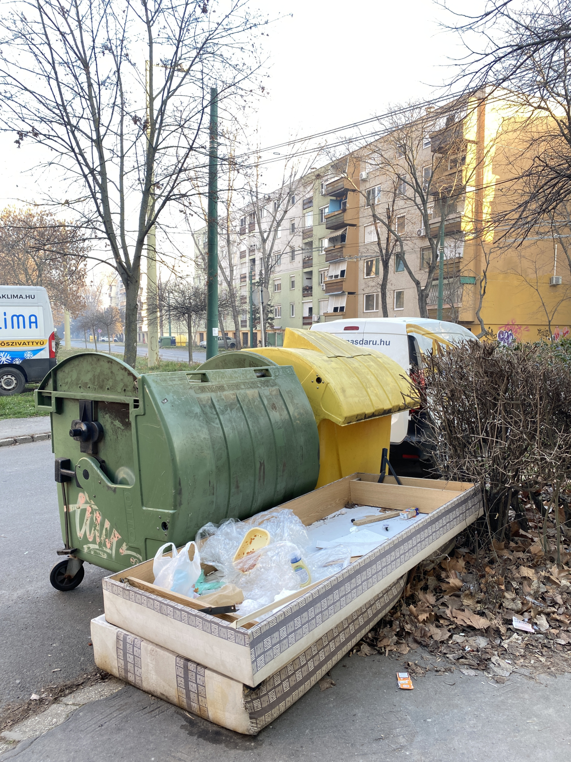 Szegeden a Hont Ferenc utca 18/A elé ismeretlen személy kihelyezett 2 db használt ágyat a szeméttároló kuka mögé, a járdára. Az elmúlt hónapokban folyamatosan szeméttel töltik meg az ágy belsejét az itt elhaladó emberek, a szemét folyamatosan gyűlik benne, pl ételmaradék, használt ruhanemű, alkoholos üvegek.