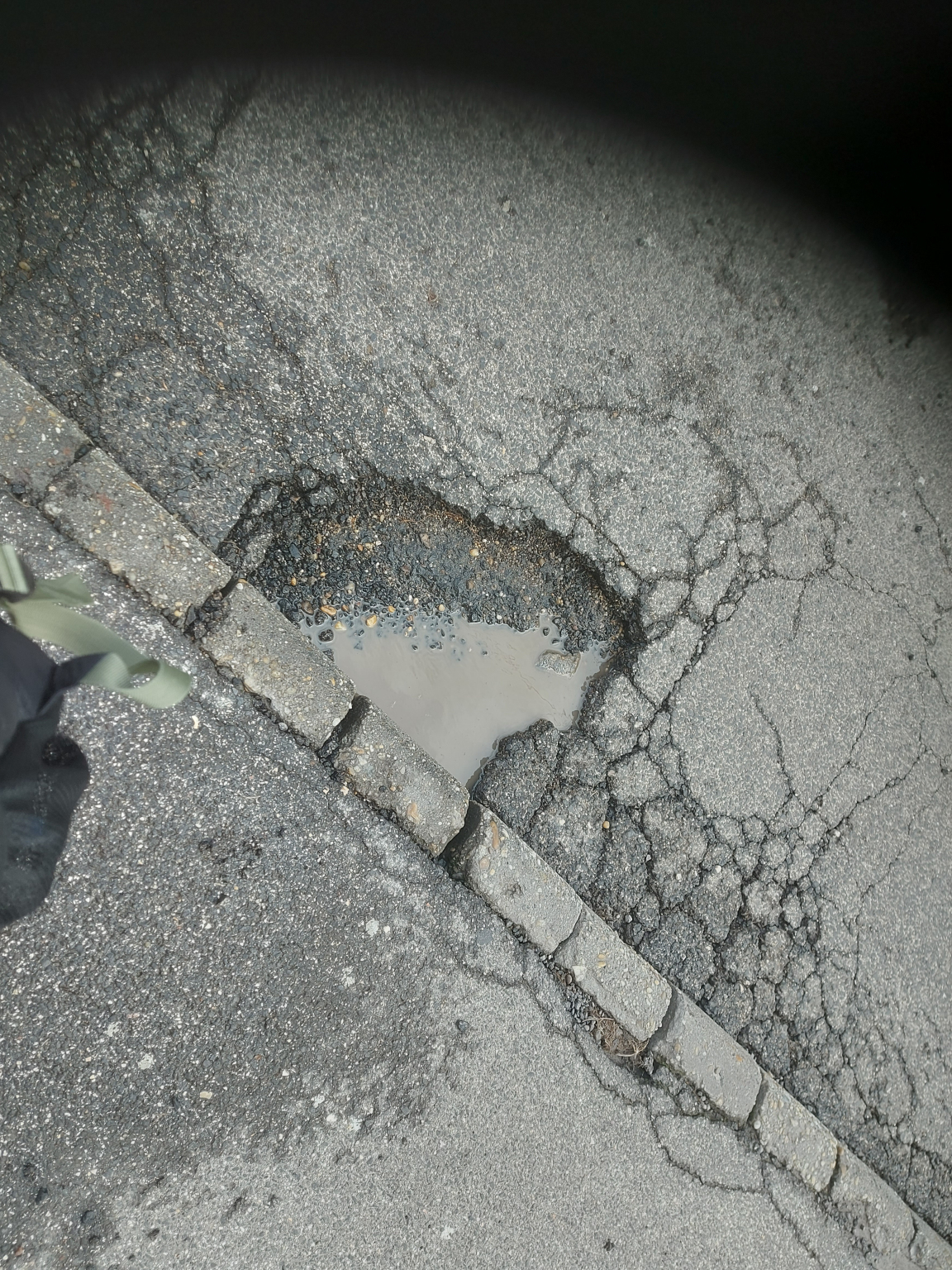 Szegeden a Mikszáth Kálmán utcában a 18-as szám magasságában növekszik jó ideje ez a kátyú.