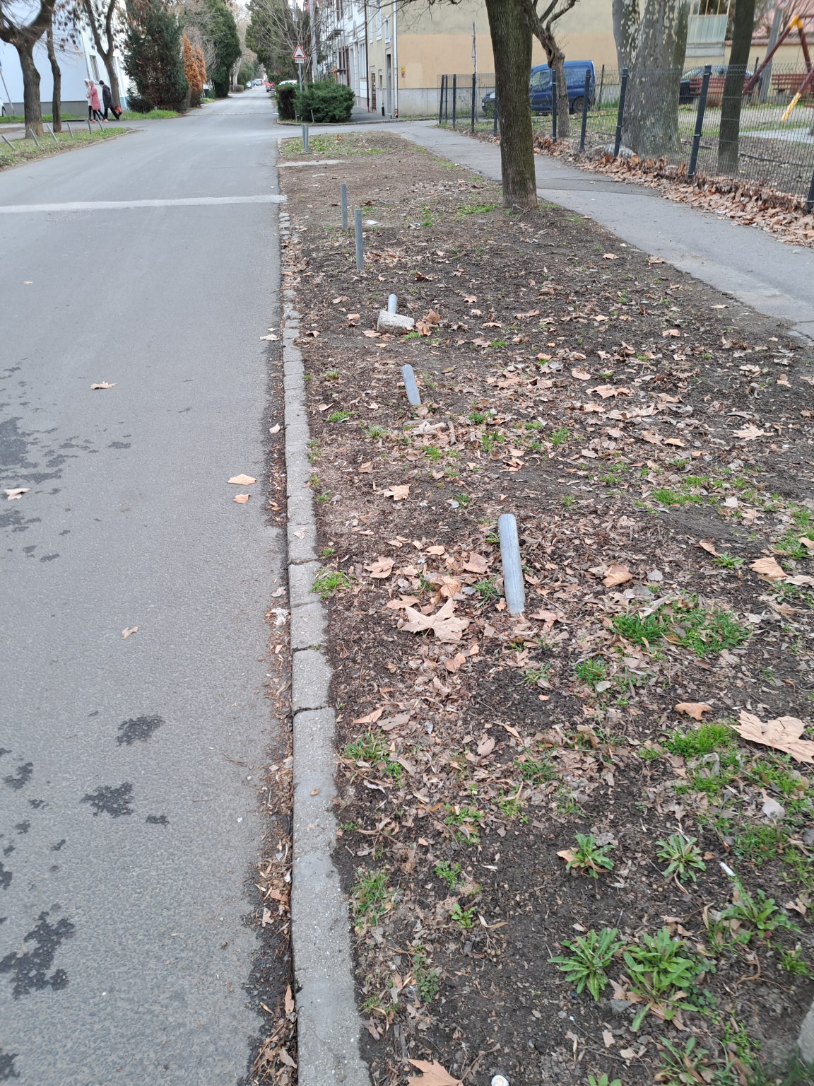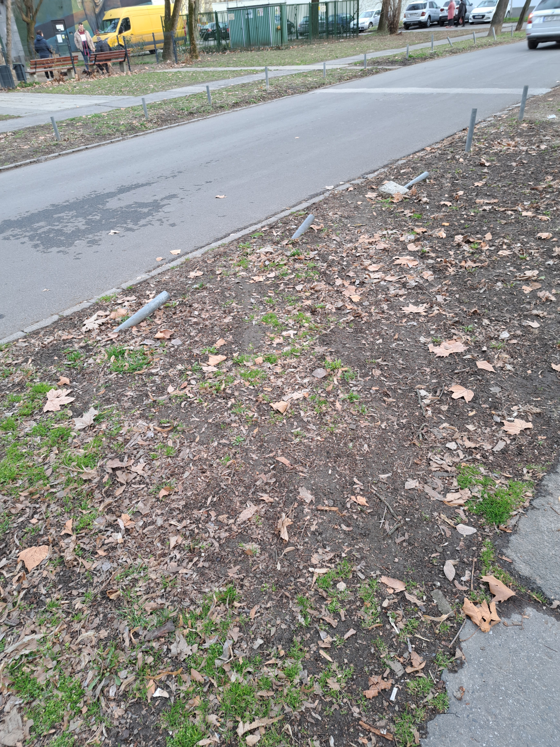 Tőből le lettek vágva, viszont új oszlopok továbbra sincsenek, így mostmár oda is parkolnak.