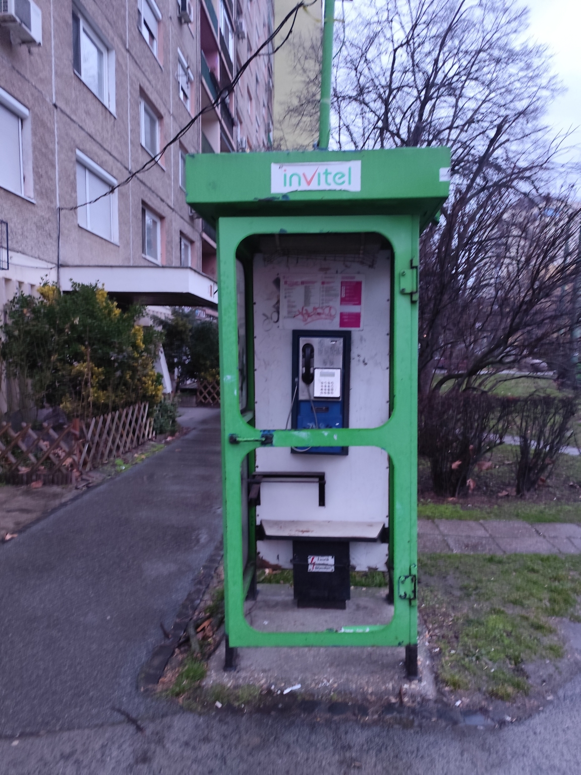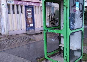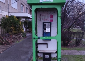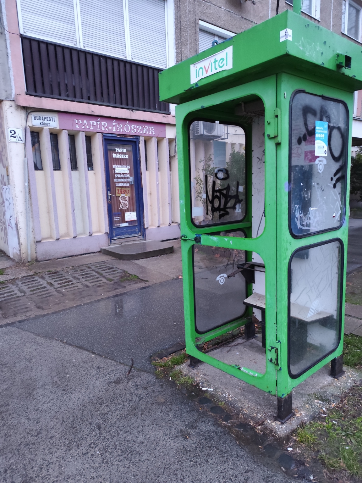 Összegrafitizett, hiányos üvegű telefonfülke - Szilléri sgt. 2/a.