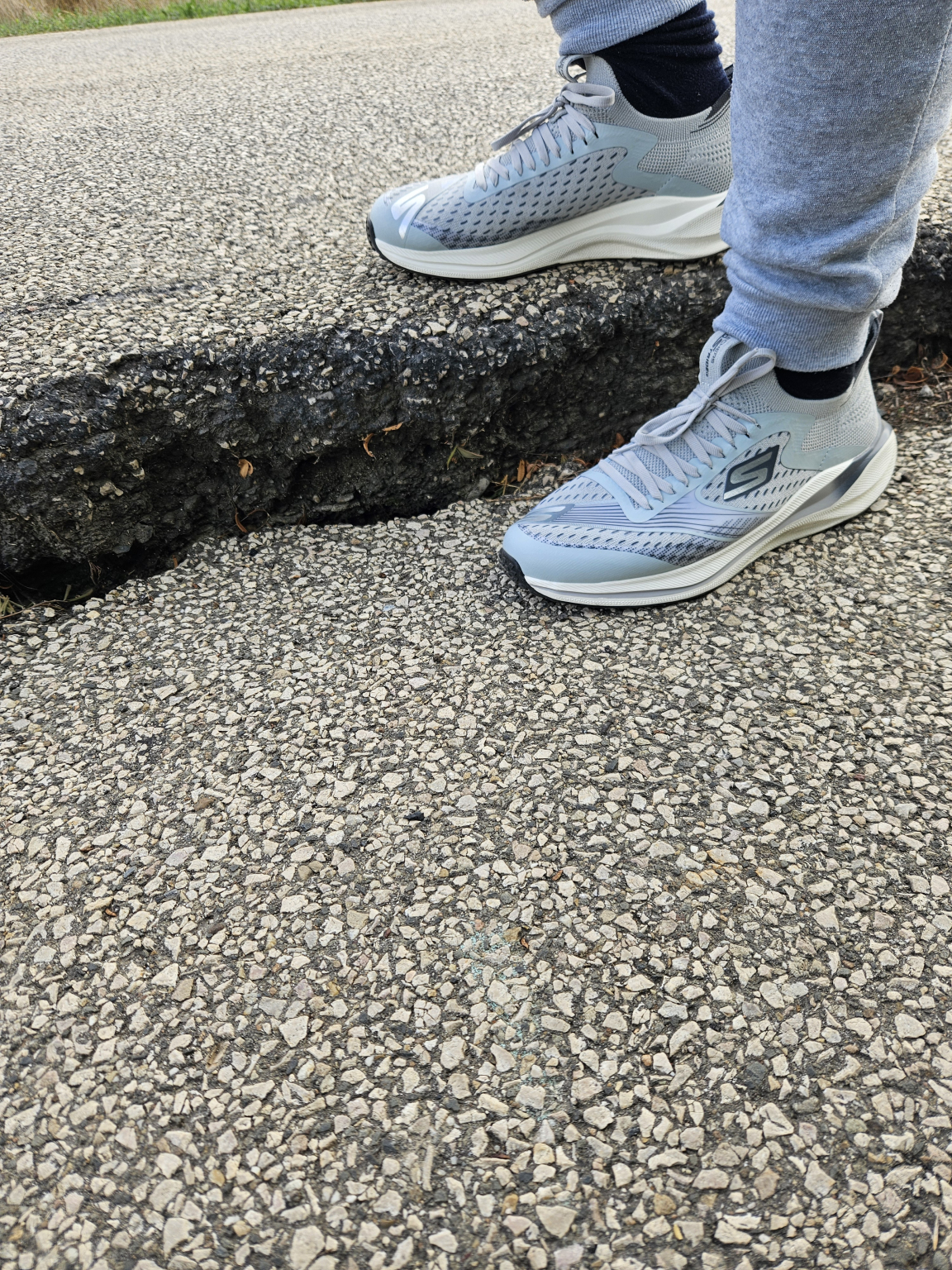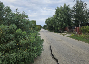 Helyenként fél út felület meg van süllyedve és hosszantinirányban fel van repedezve, 10cm es szintkülönbség.