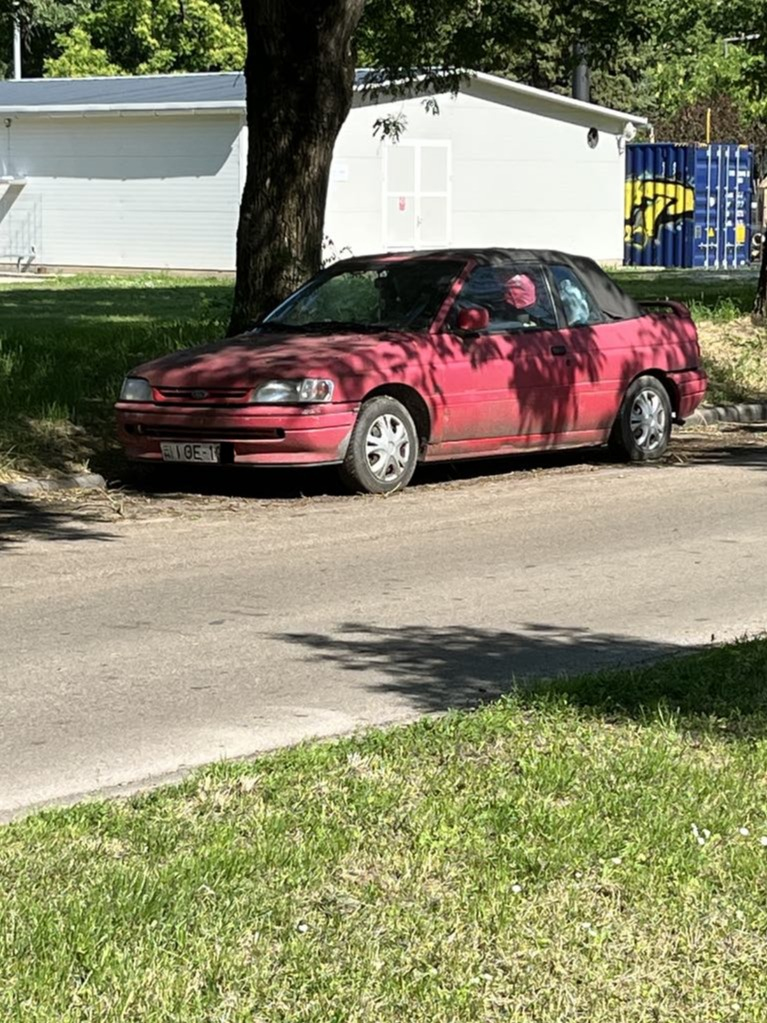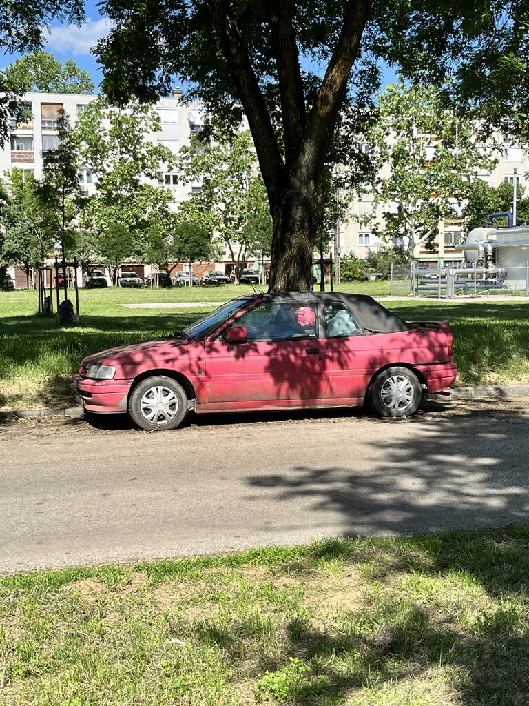 Az IOE-19* frsz. piros Ford Escort gépkocsi, melynek műszakija 2021-ben lejárt, szemétraktárként áll a Molnár utcán, a Tabán Általános Iskola hátsó kerítésével szemben, hónapok óta.