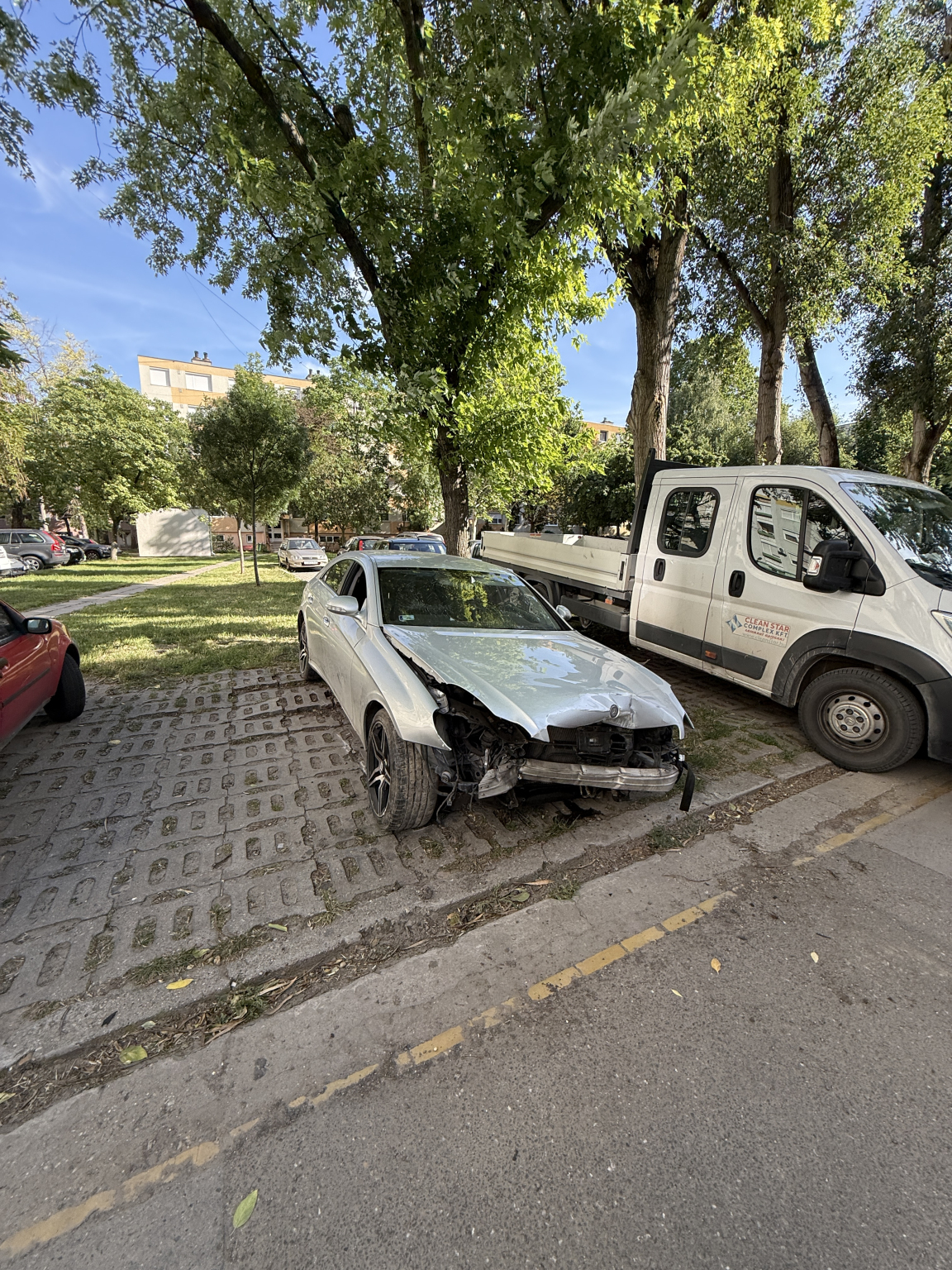 Egy közlekedésre alkalmatlan autót egy egyébként is zsúfolt parkolóba vontattak. Ezzel tovább növelve az alapból is nehéz parkolási levehetőségeket.