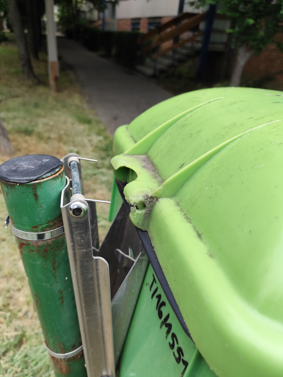 Sajnos még nem javult meg a kukatető. Az adott címen a focipálya felőli oldalon van. Ezt a képet is ma készítettem.