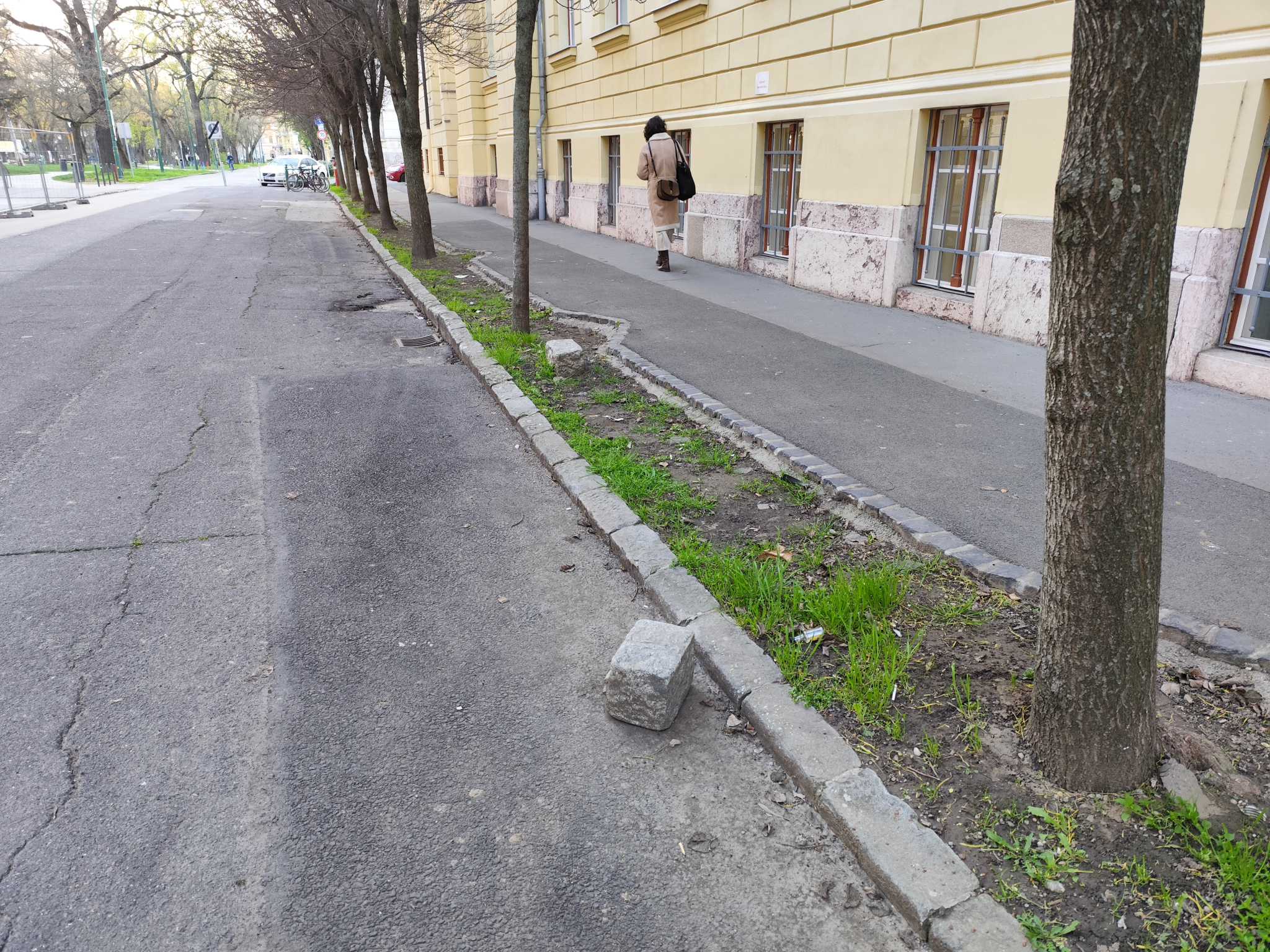 2 darab szegélykő van a Radnóti gimi oldalánál a Stefániára vezető útszakaszon. Kérem az illetékes szakembereket, hogy vigyék el ezeket! Köszönöm szépen!