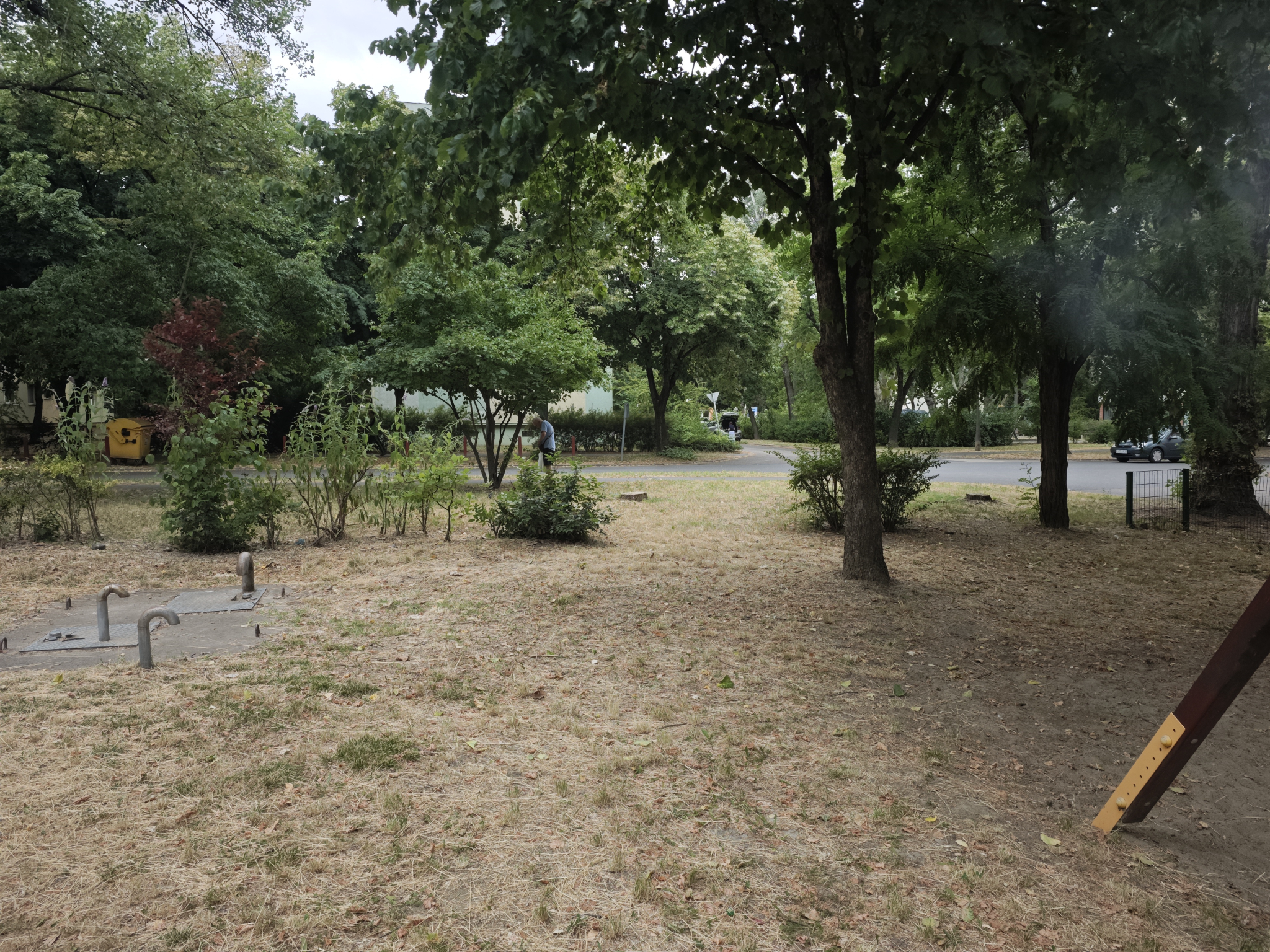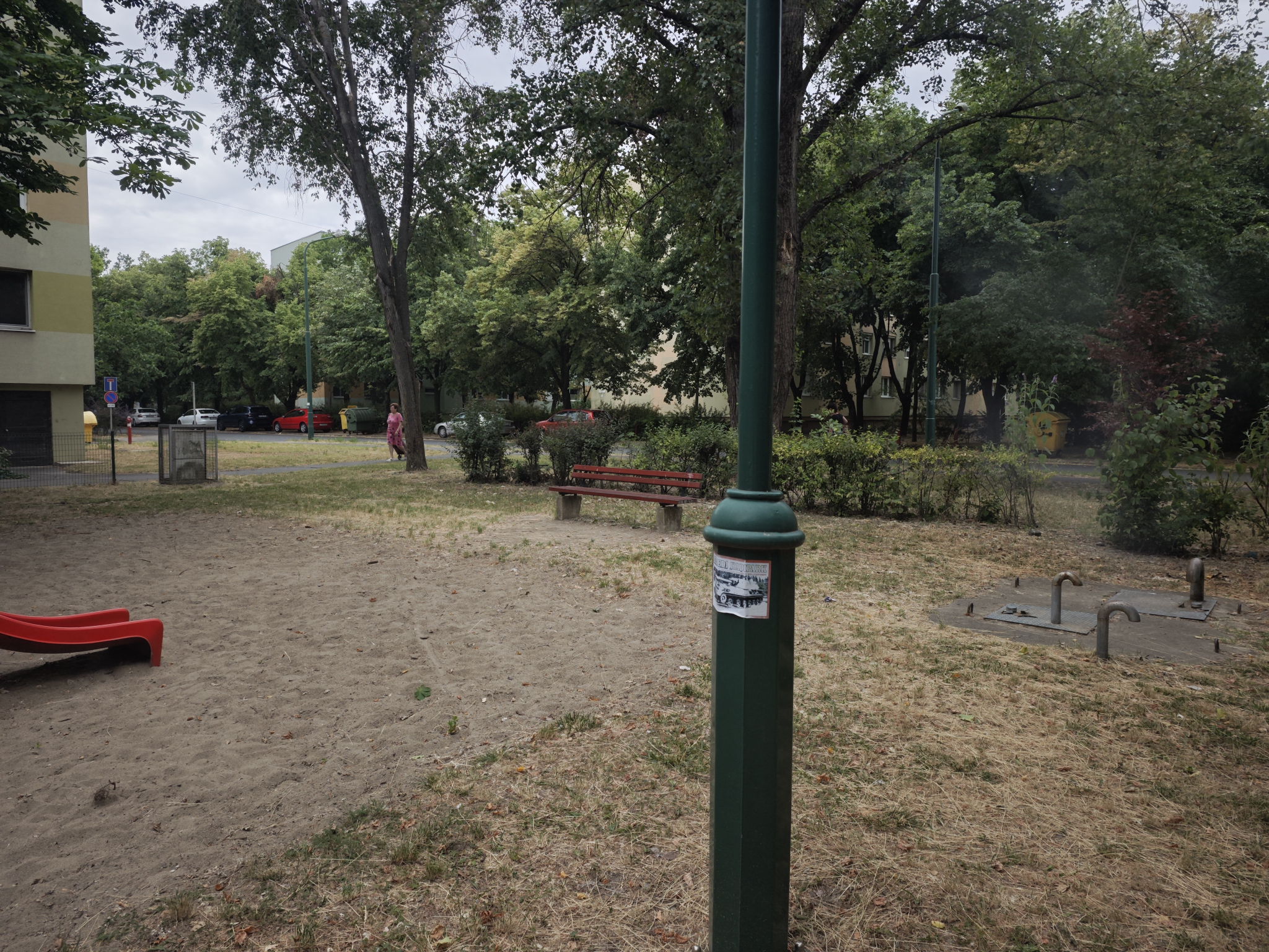 A játszótéren az úttest felől hiányzik a kerítés. Borzasztóan balesetveszélyes!