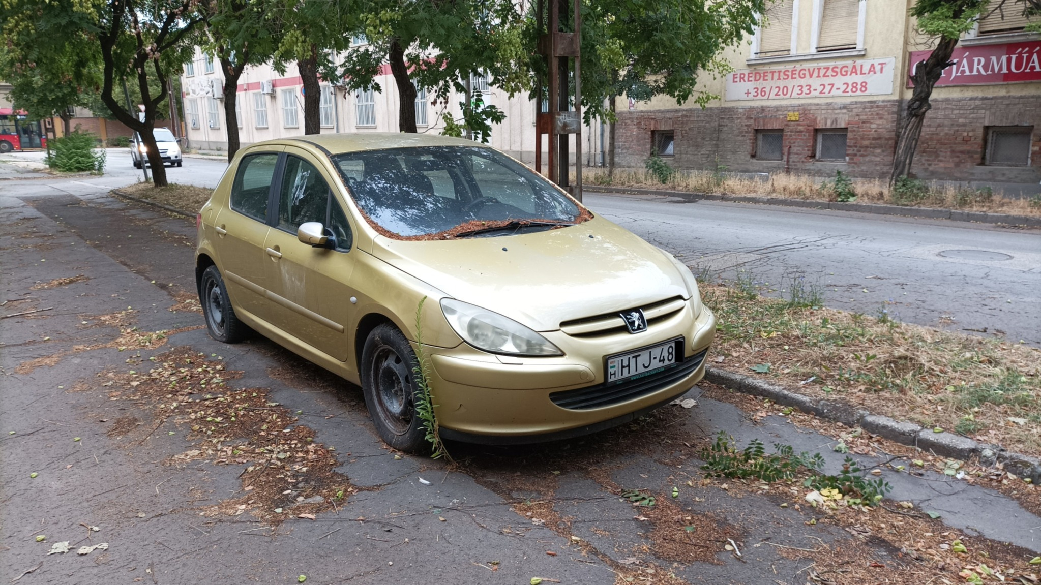 A szegedi polgármesteri hivatal parkolójában már régebb óta áll ez az autó, feleslegesen elfoglalva a nem túl sok parkolóhely egyikét. Látszik, hogy már a gaz is kinőtt az első kerekénél, a hátsó kereke pedig teljesen lapos és tele van a felette levő fákról lehullott szeméttel: már hónapok óta nem mozdult onnan.