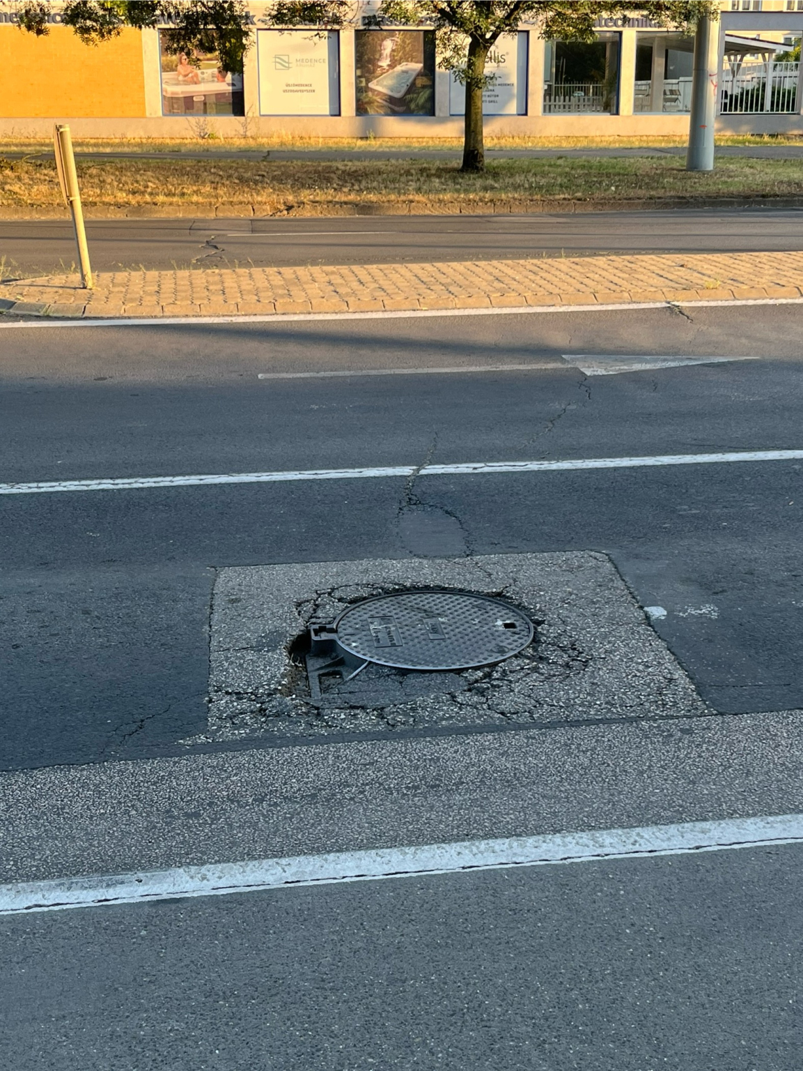 Kátyú az aknafedél körül