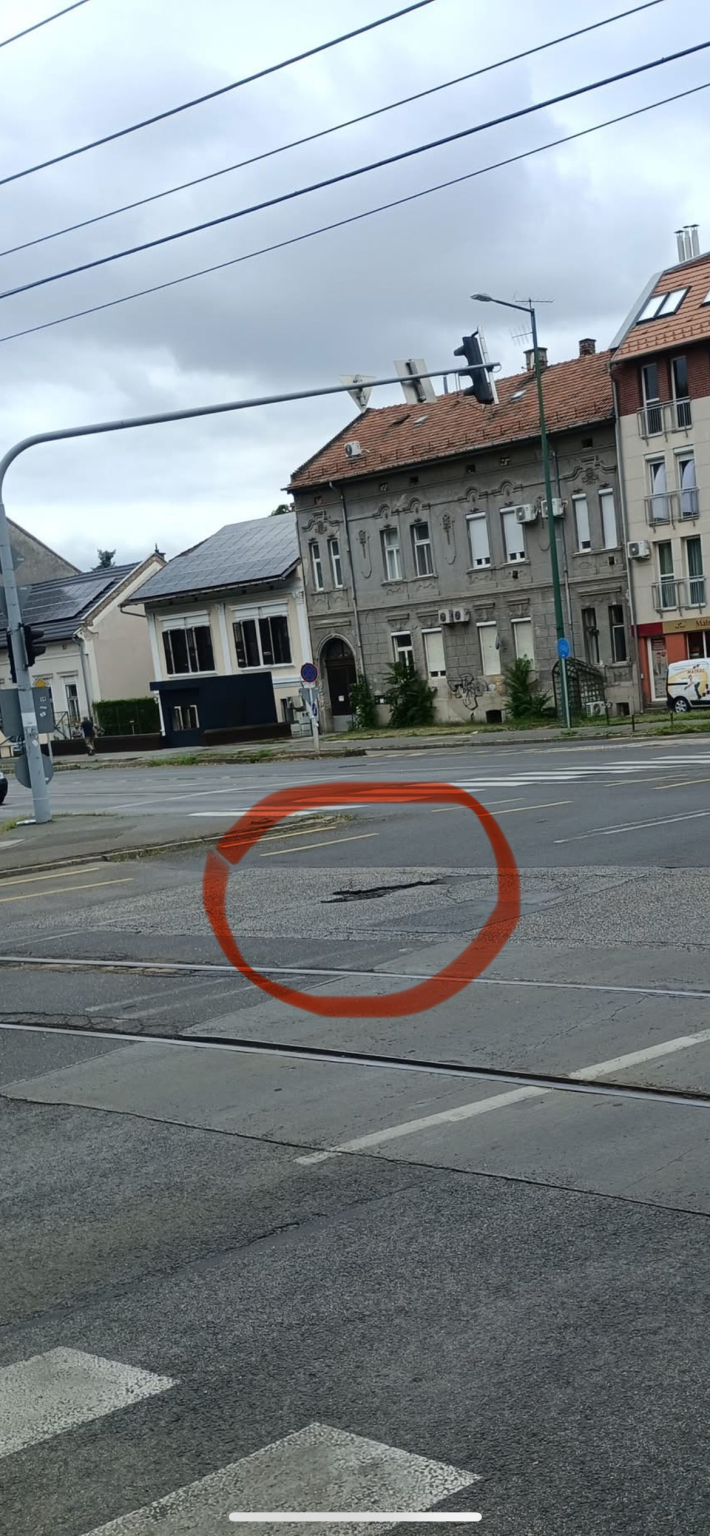 Szeged, Bécsi körút-Petőfi sugárúti útkereszteződésben a vasútállomás irányában hatalmas kátyú éktelenkedik. Kikerülni nehéz, mert pont a 2 párhuzamos sáv határán van.