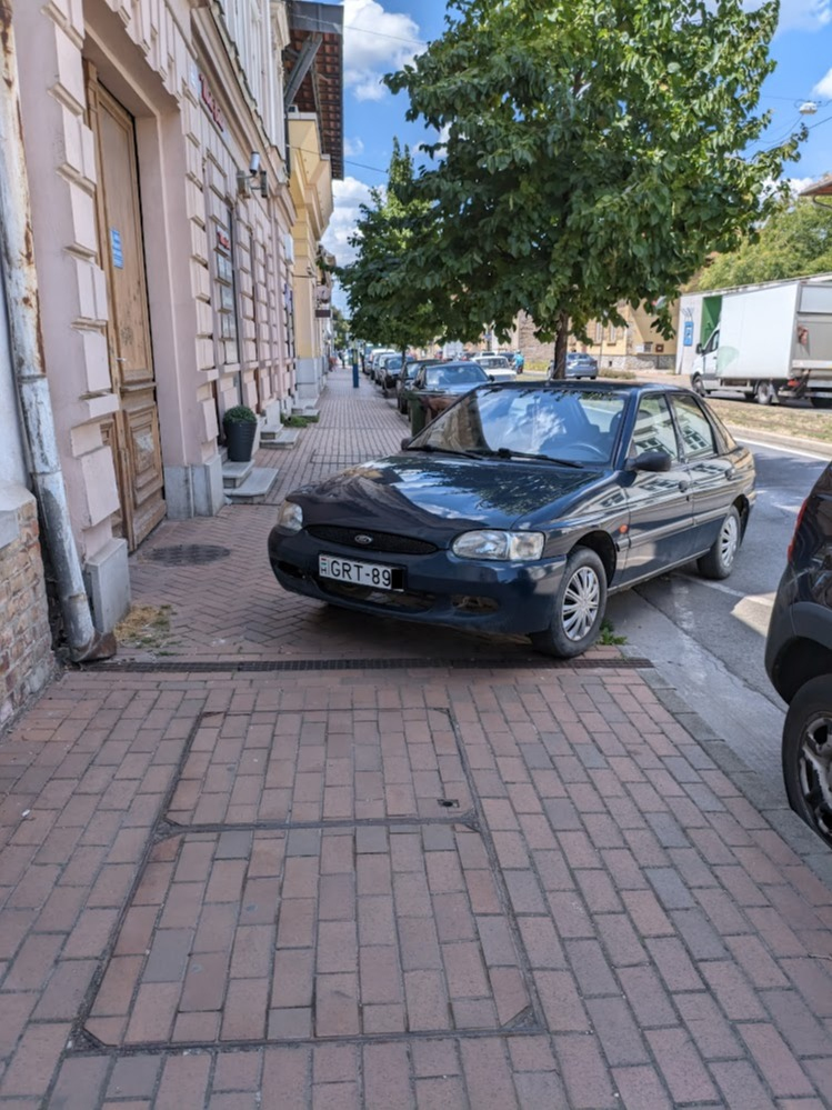 Szinte a teljes járdát elfoglalja a jármű. Tegnap délután már biztosan ott volt.