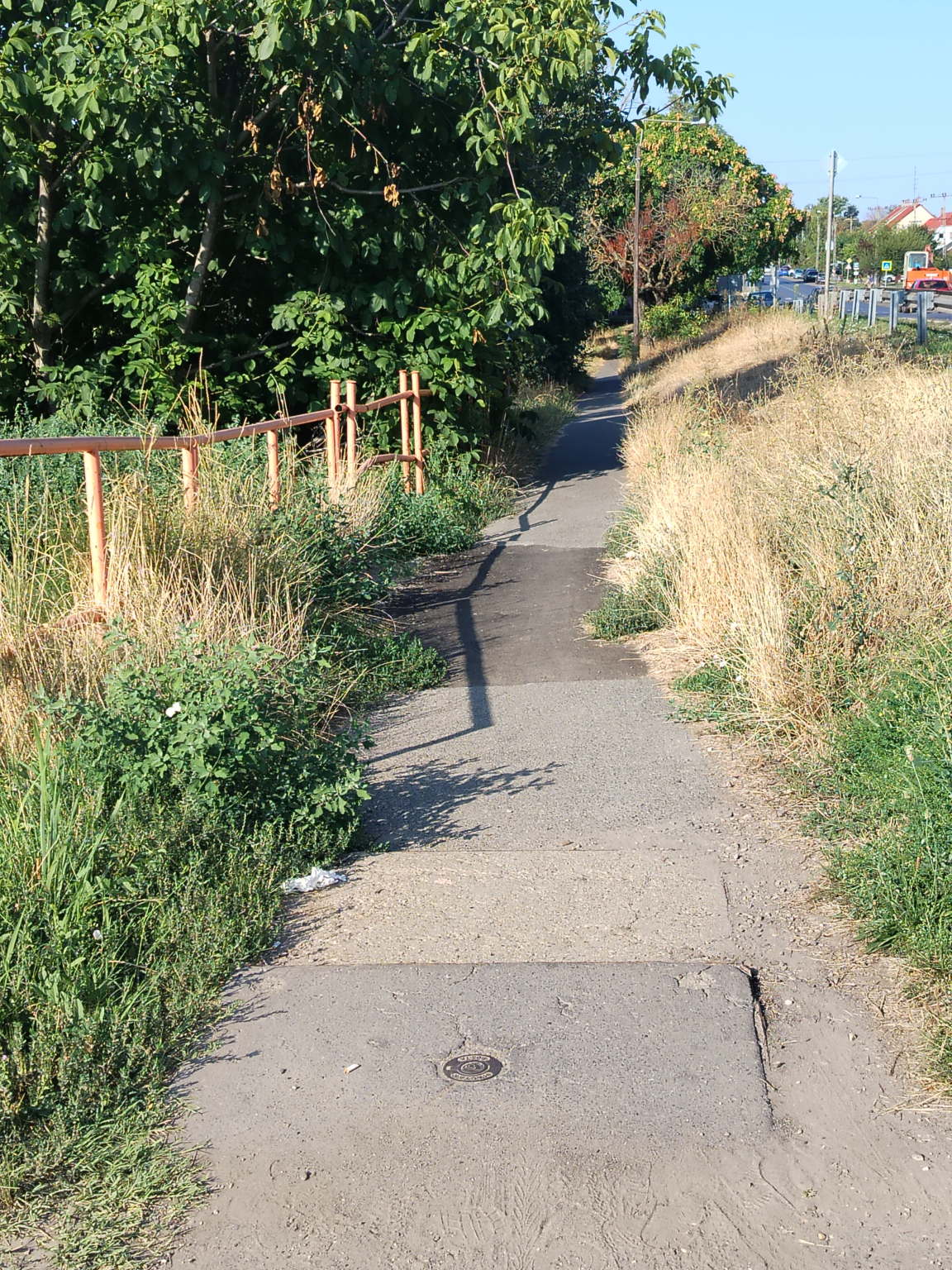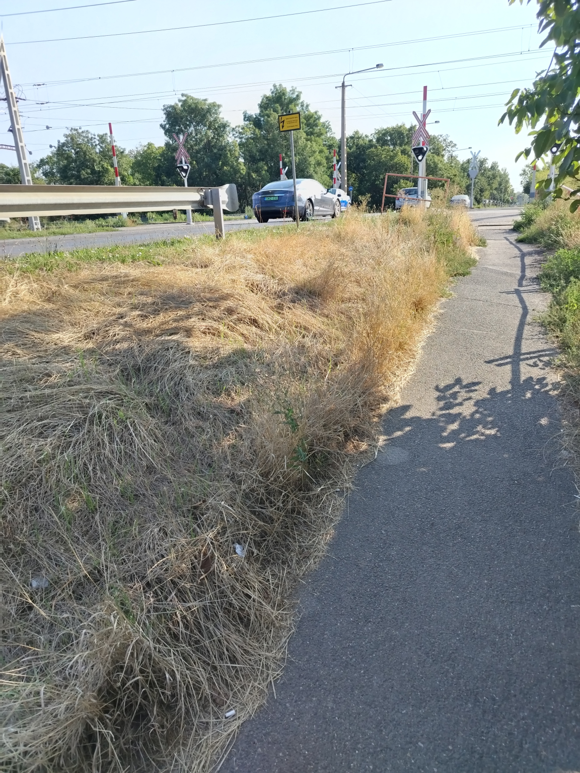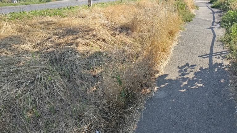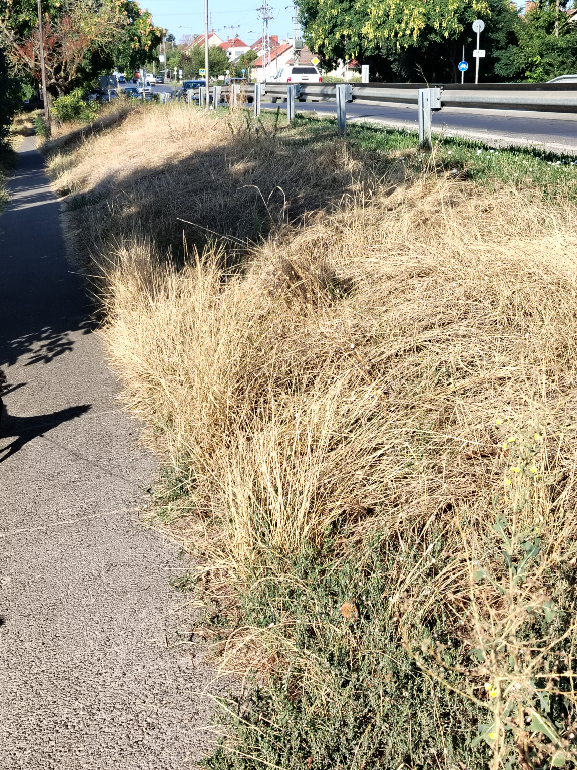 Szeged Kecskés telepi vasúti átjáró utáni gyalogjárda mellett már nagyon régóta nincs levágva a fű. Ráhajlik a járdára, jelentősen beszűkítve azt. Az úttest mellett található, nagyon tűzveszélyes, mert most megszáradt. Az úton haladó kocsikból bárki kihajít egy csikket, lángrarobbanthatja a környéket! (lakóházak közvetlen közelében)