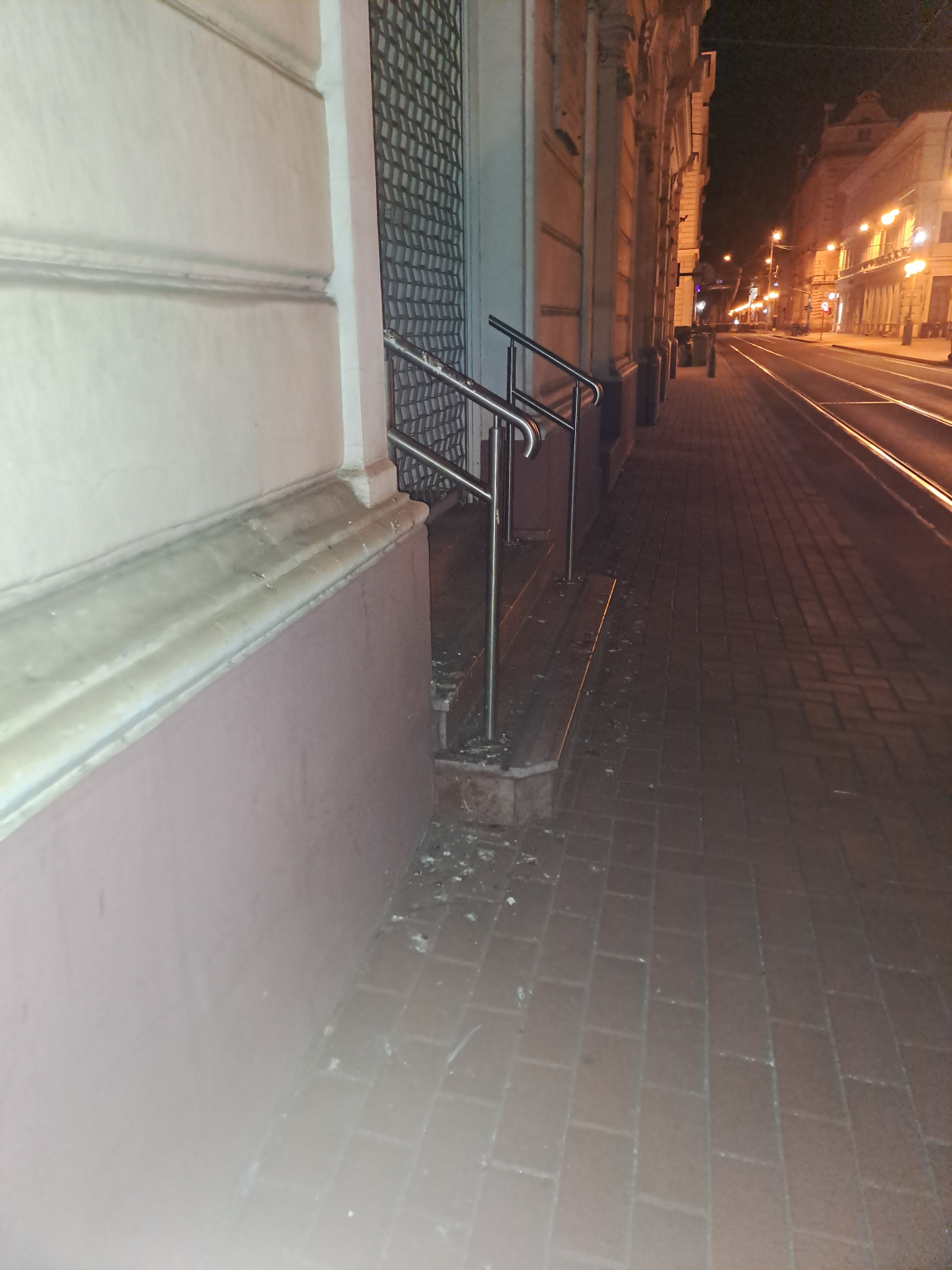Közepes, de nem elhanyagolható mennyiségű madárürülék található a járdán a Kelemen László utcaában a régi Ofotért üzlet előtti szakaszon.