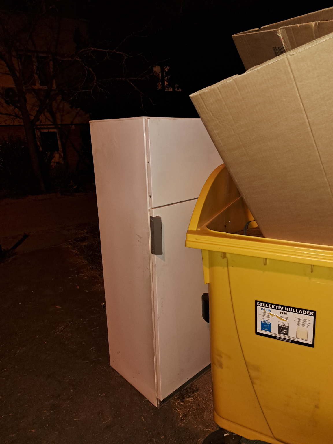 Régi hűtőjétől a szelektív gyűjtőnél szabadult meg valaki.
