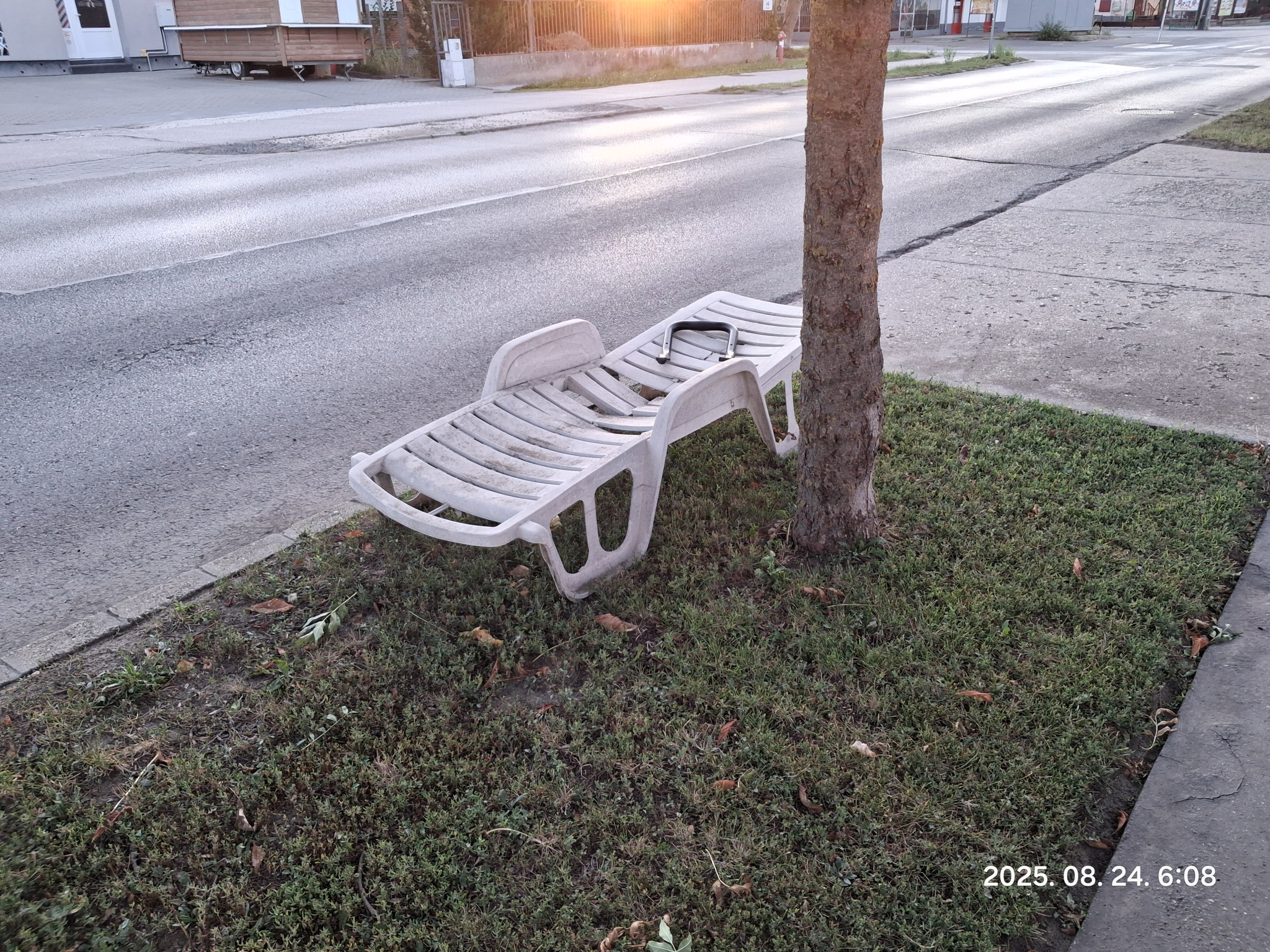 A fő fasori autómosó előtt már bő egy hónapja ott éktelenkedik a képen látható ronda törött napozóágy. Láthatóan senkinek sem áll szándékában eltüntetni onnan.