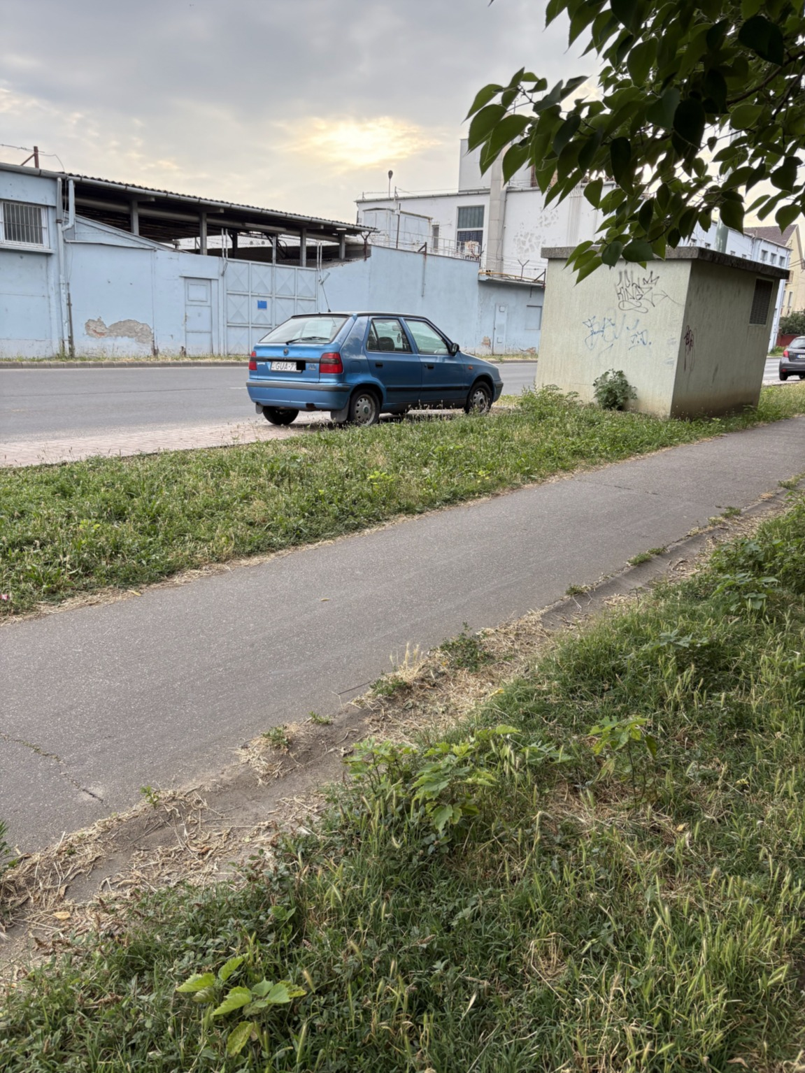 Körtöltés u. 1/D előtt áll egy GUA-77* rendszámú, lejárt múszaki vizsgával rendelkező kék Sokda Felicia. Elfoglalja az egyébként is kevés parkolóhelyet.