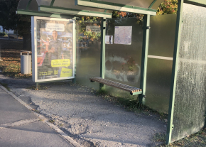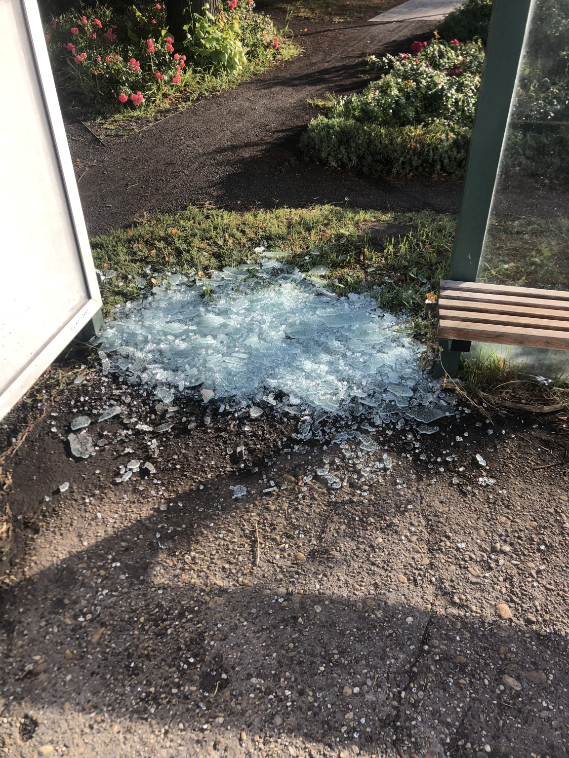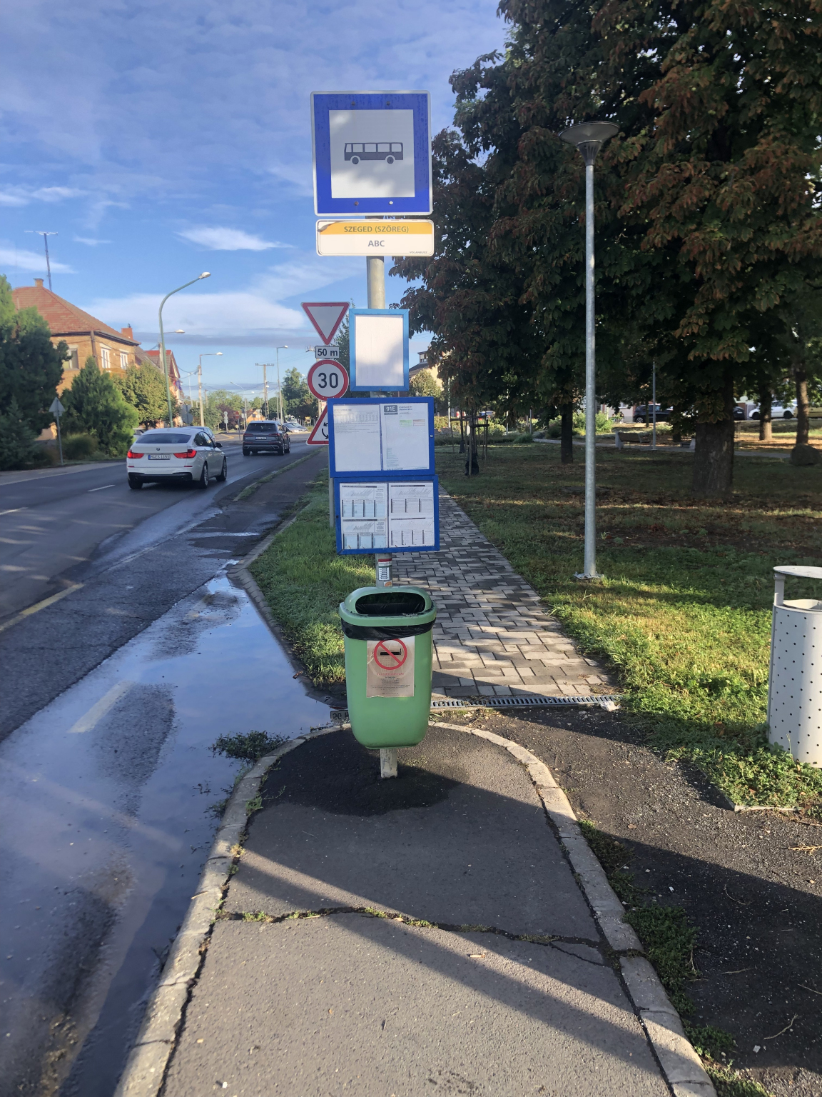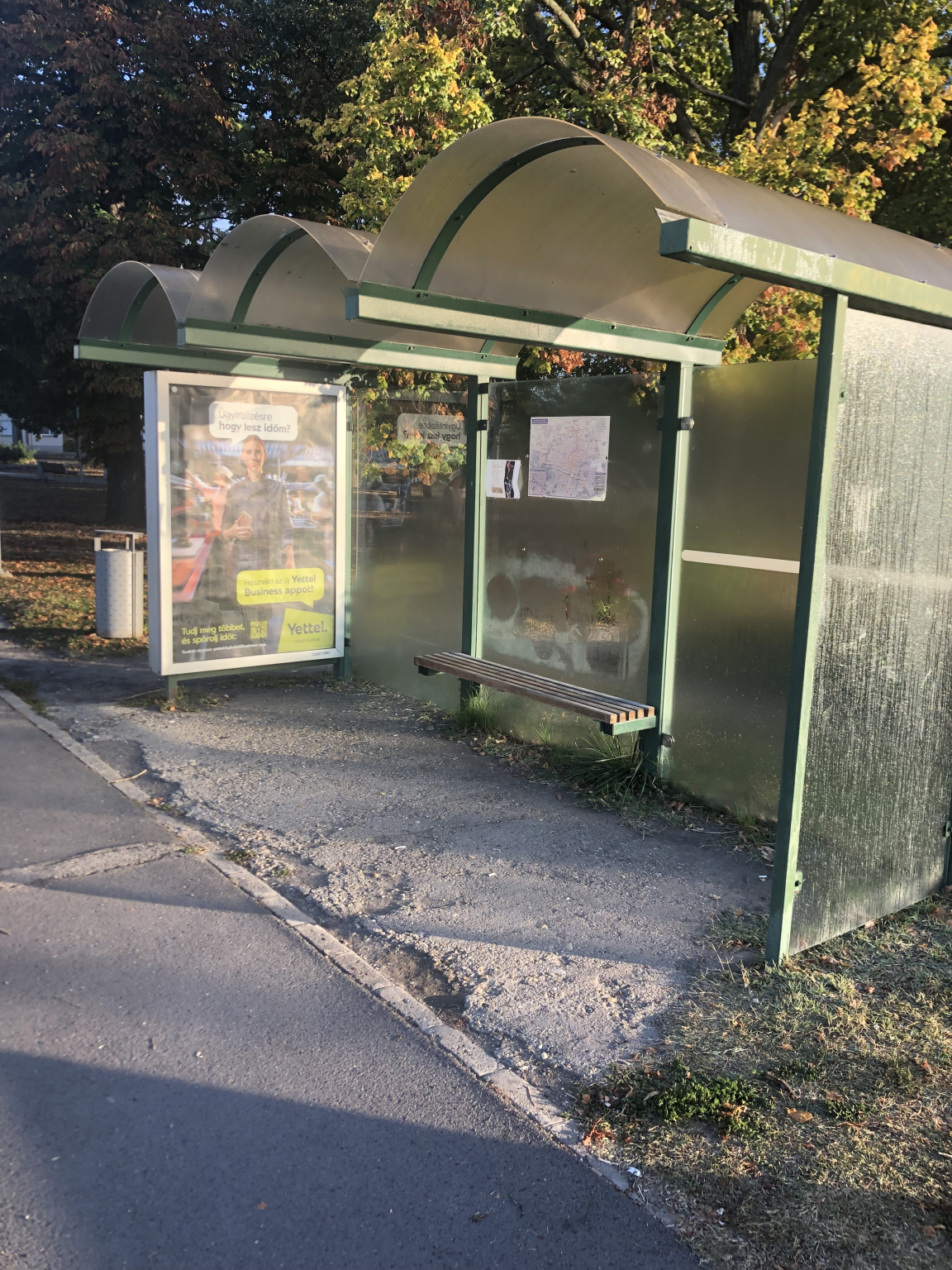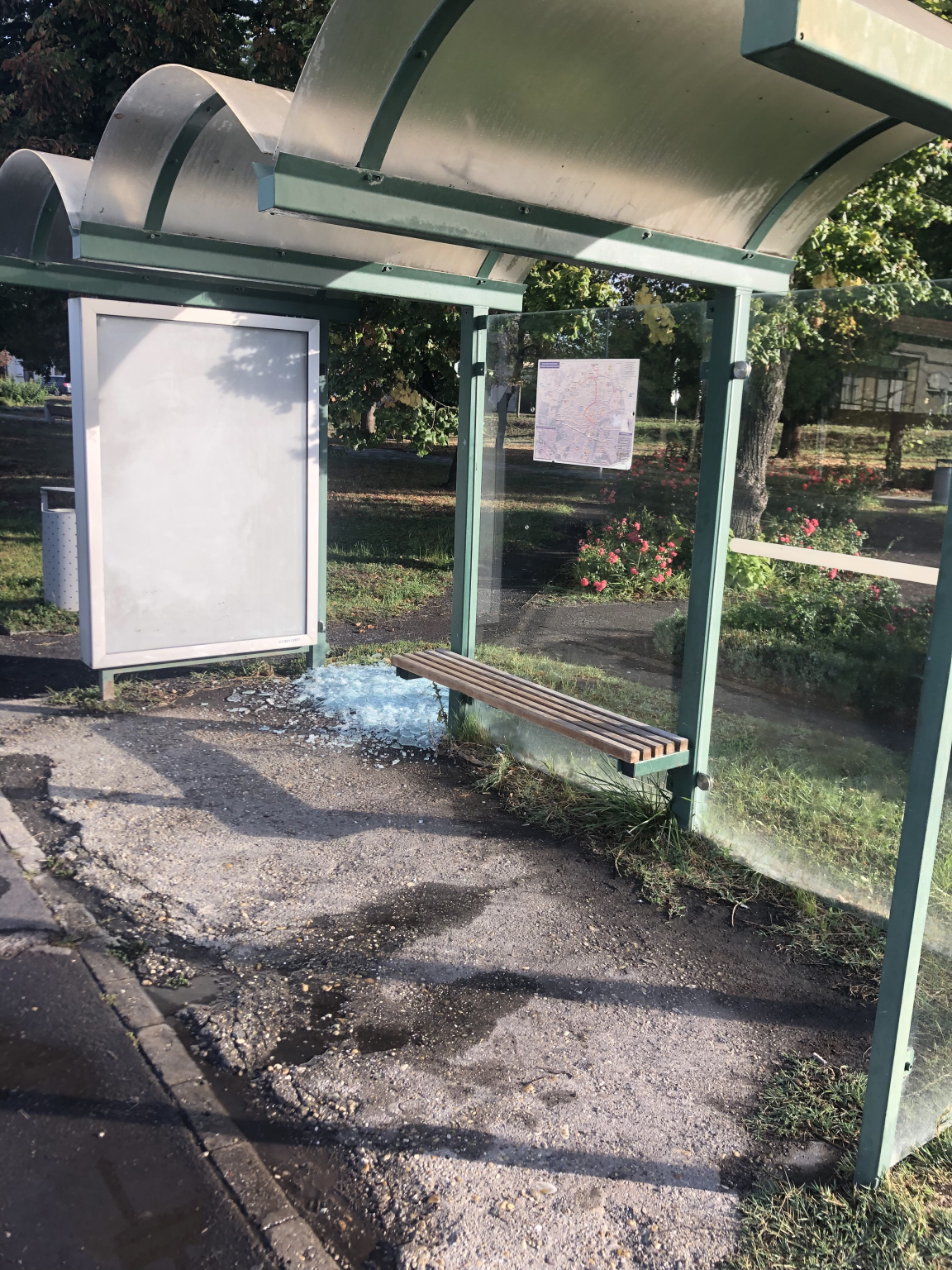 Szeged-Szőreg ABC utasváró üvegpaneljét sajnos valaki kitörte.