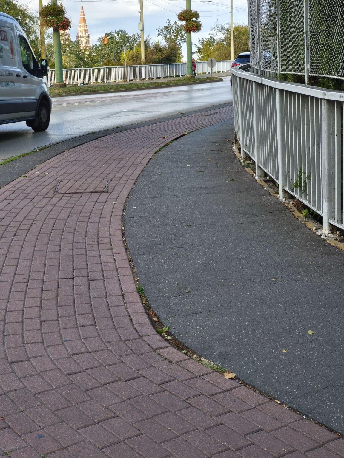 A mellékelt képeken látható díszburkolat és aszfalt közti rés egyre szélesebb lesz idővel, ami nagyon könnyen balesetveszélyes helyzetet teremthet.