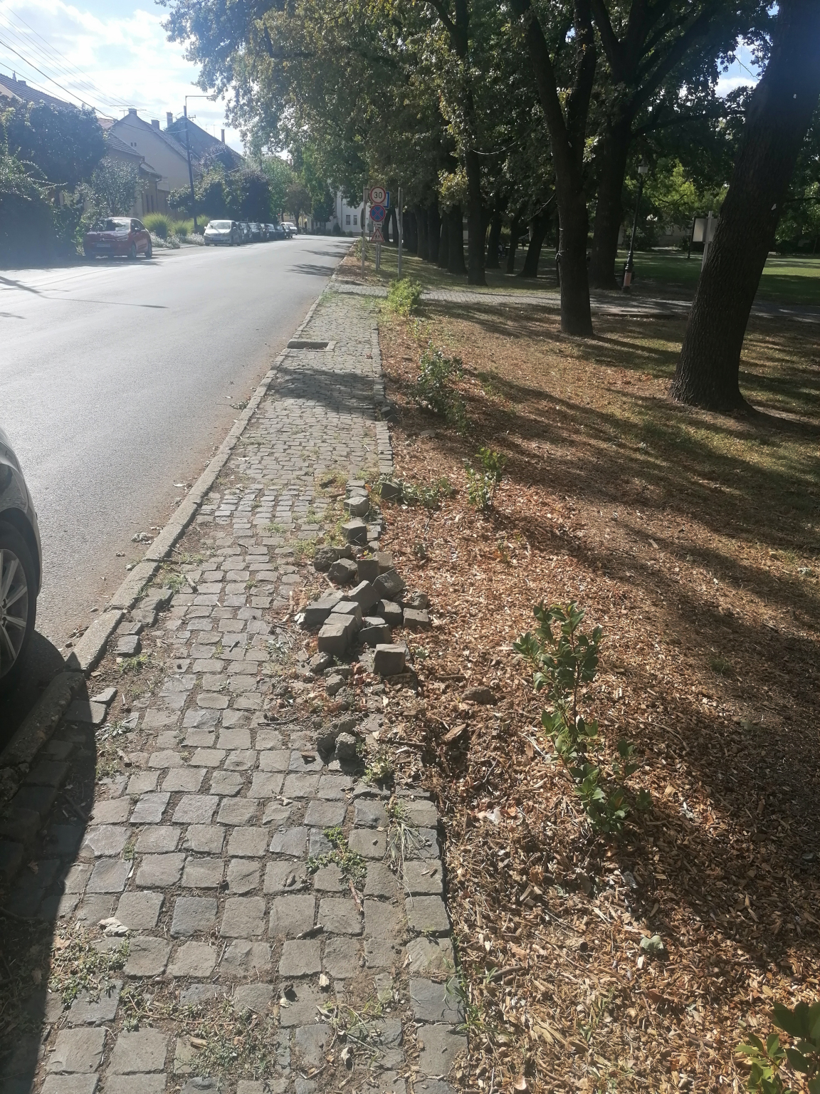 A Mátyás téren a templomi behajtó előtt széthullófélben van a járda. Kérjük, hozzák helyre! Köszönjük!