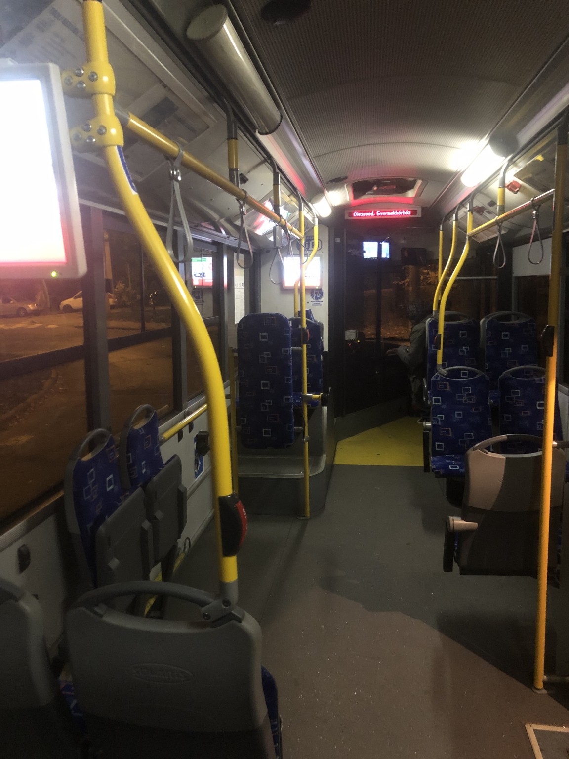 A T-872-es pályaszámú trolin kiégett az utastéri lámpa a középső ajtónál.