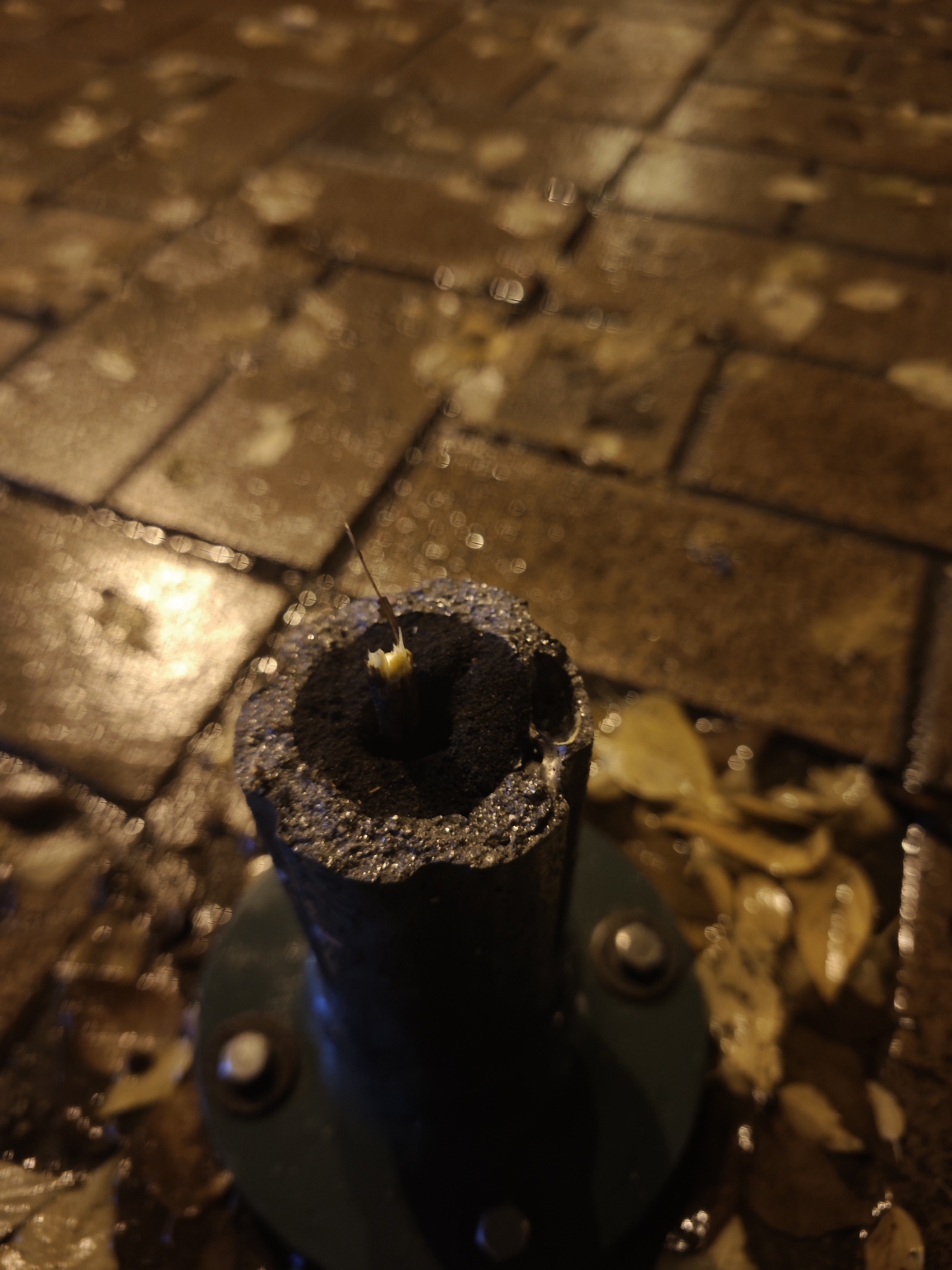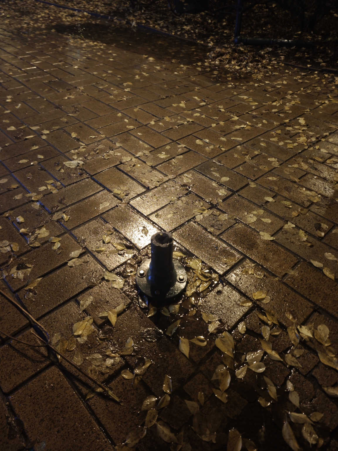 A járda közepén oszlopcsonk, alig észrevehető, főleg este. Sok biciklis, rolleres jár erre.