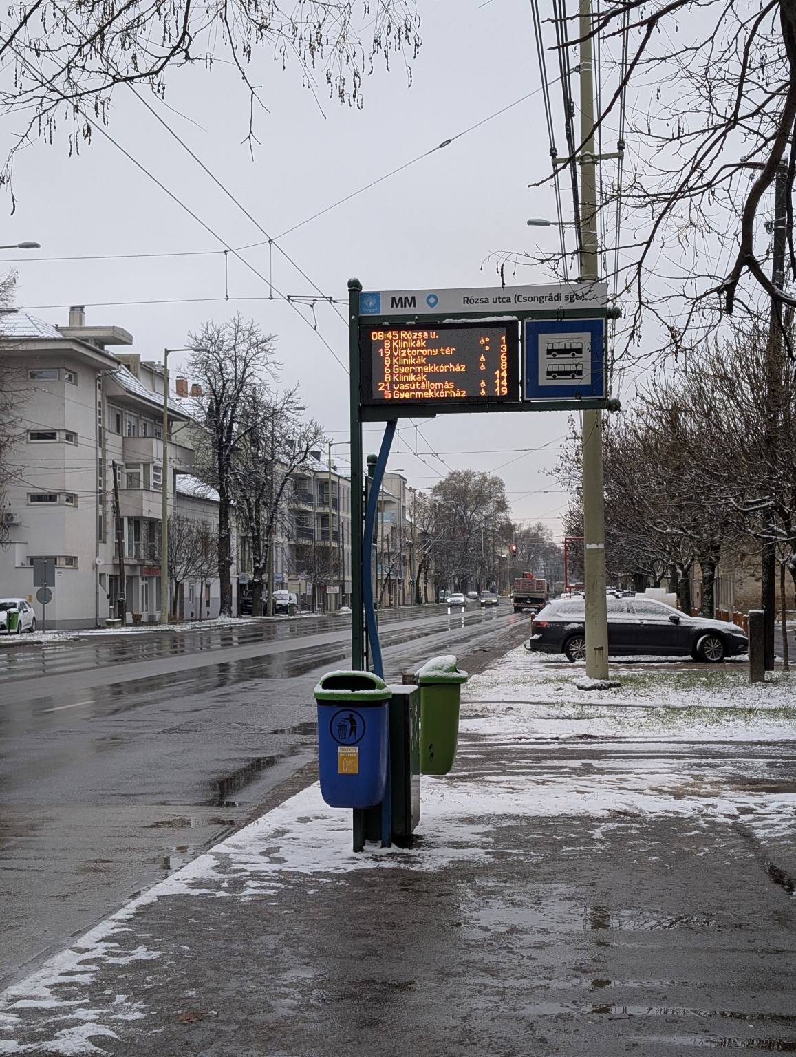 Szegeden a Rózsa utca Belvárosi irányú SZKT megállójában a kijelző nem működik, kérem javítsák.