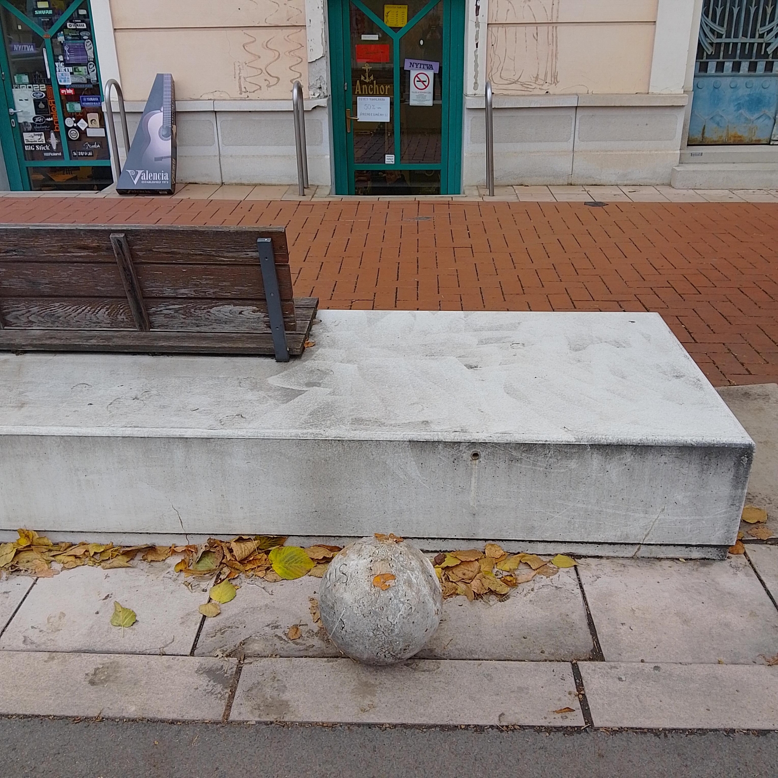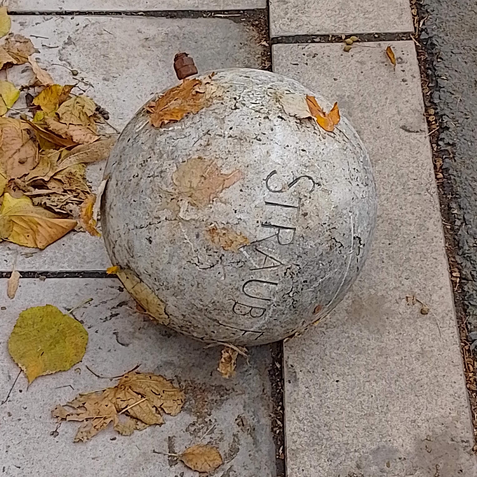 A Straub F. Brúnó emlékére készült gömböt valaki kirángatta a helyéről, és az utca másik oldalára vitte.
