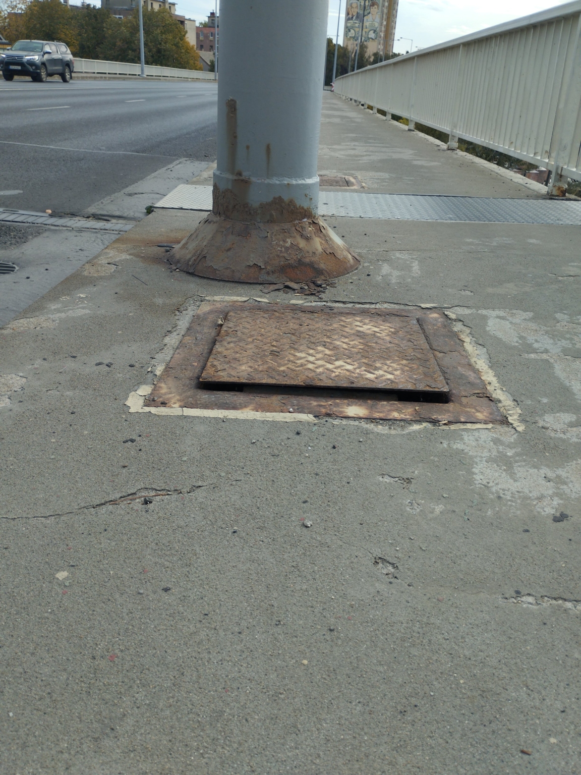 Hídon több rozsdás, nem jól záró aknatető