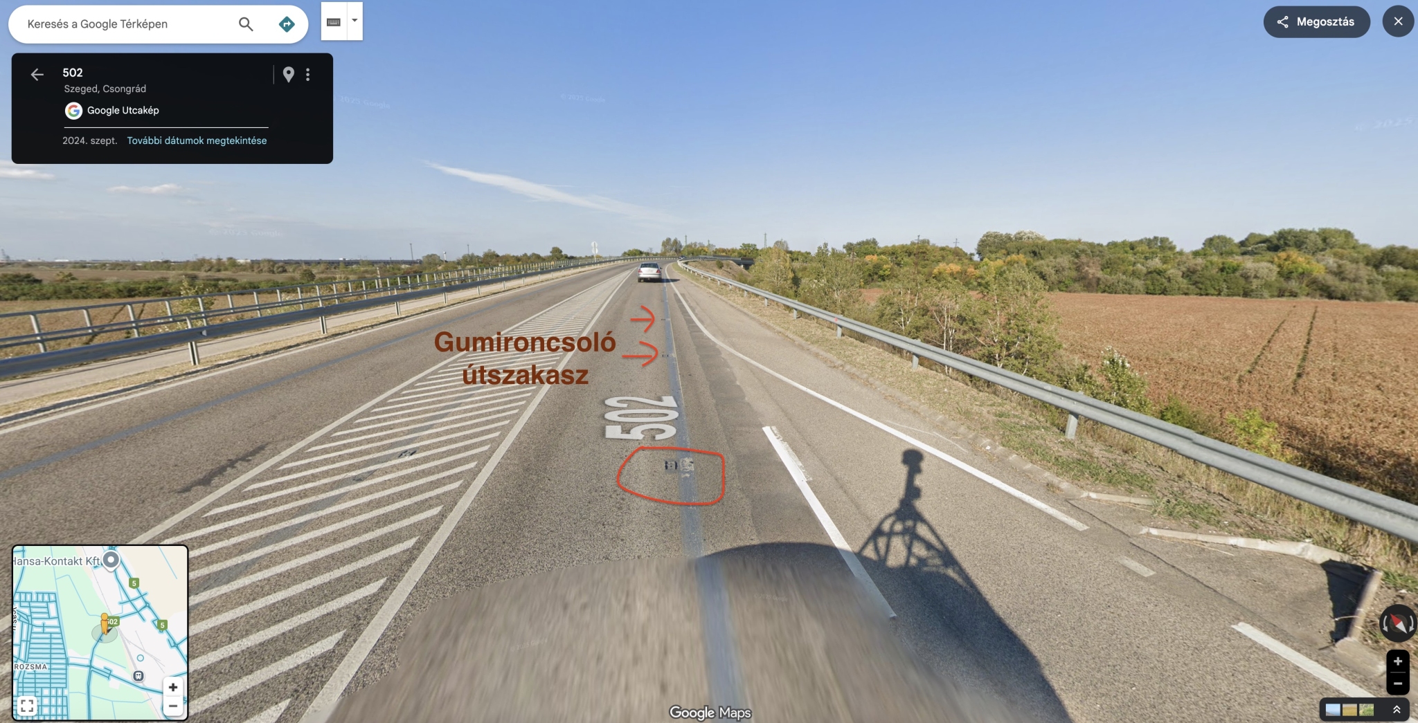 A csatolt képen legalább 1 éve látható egy hanyag útmódosítás amortizáló eredménye. Dorozsma és az Auchan közötti úton egy felüljárószerű részen módosították a felfestést, de az útburkolati prizmákat ott felejtették. Ezen az útszakaszon lehetetlen úgy közlekedni, hogy vagy ne sértsek záróvonalat (ez balesetveszélyes és szabálytalan) vagy ne guruljak végig ezen a gumidaráló részen. Feltételezem csak le kellene szerelni ezeket az útról, legrosszabb esetben akkus flexxel levágni. Kérem az illetékest, hogy vegye észre és orvosolja a problémát, köszönöm!