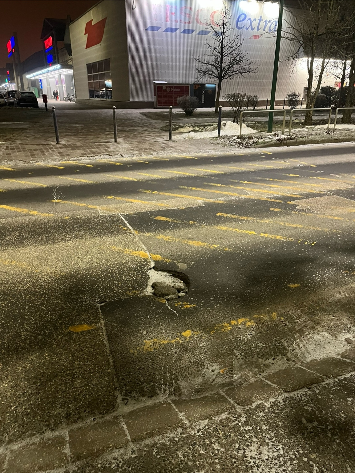 Ismét kialakult egy igazi keréktörő kátyú a Tesco mellett, a Körtöltés utcában. Mivel az útszakasz nagyon forgalmas, így jó lenne minél előbb kijavítani az úthibát. Köszönjük!