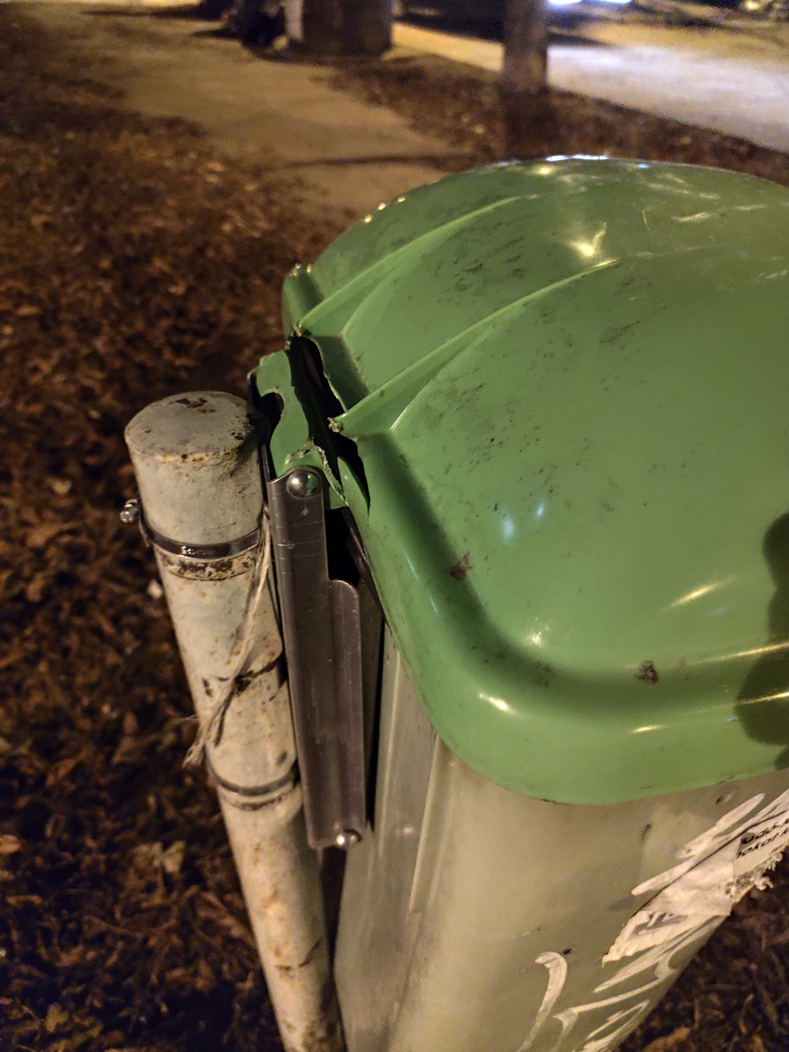 A Bihari utca 27. számnál törött a kukatető. Kérem a tisztelt szakembereket, hogy cseréljék ki! Köszönöm!