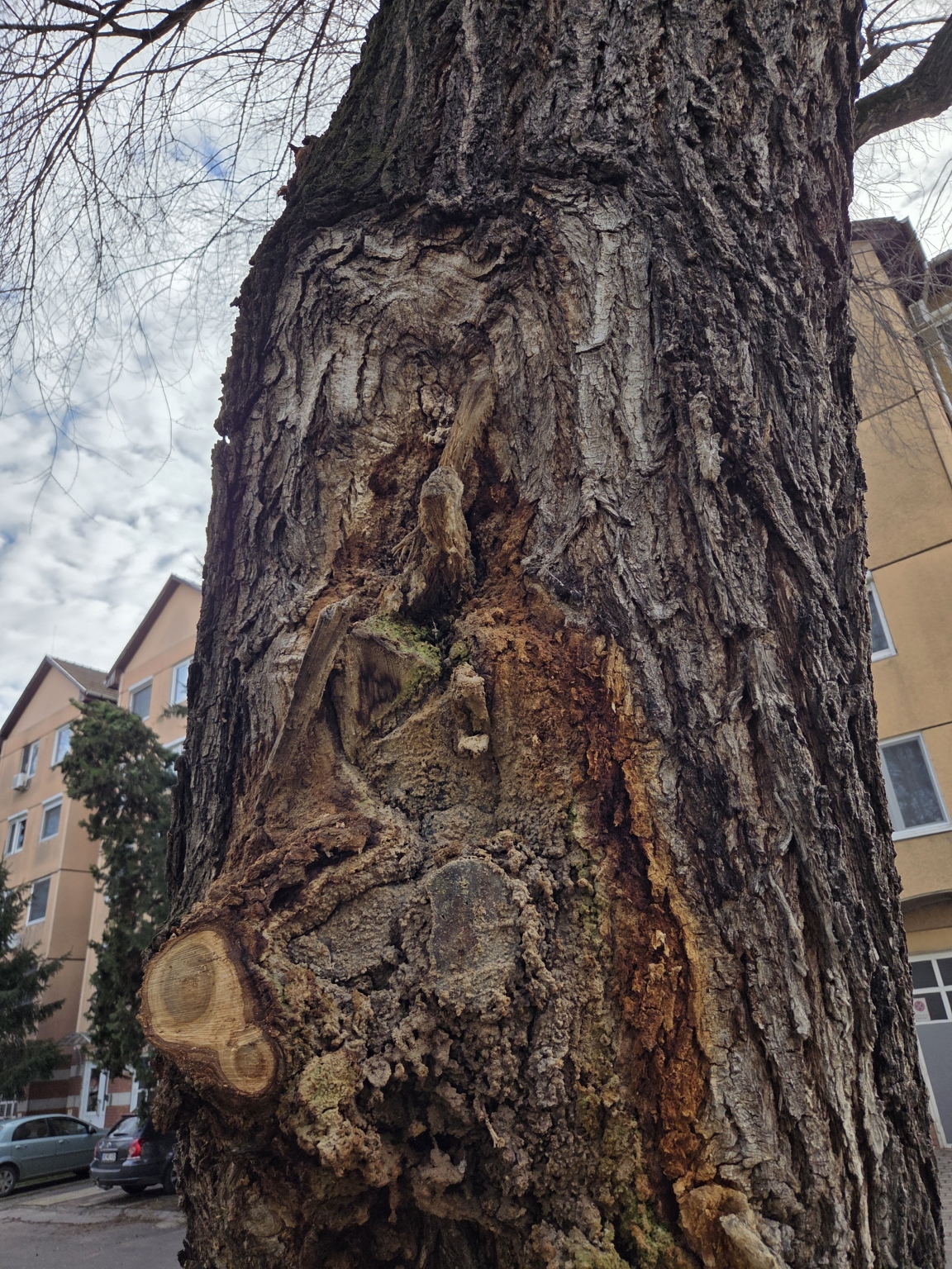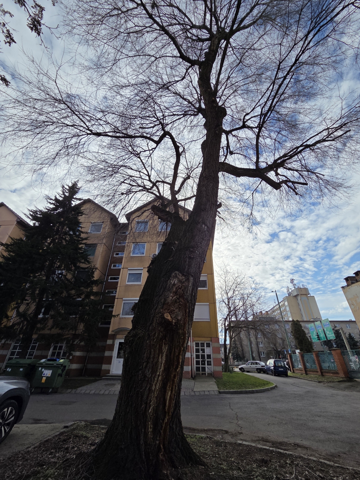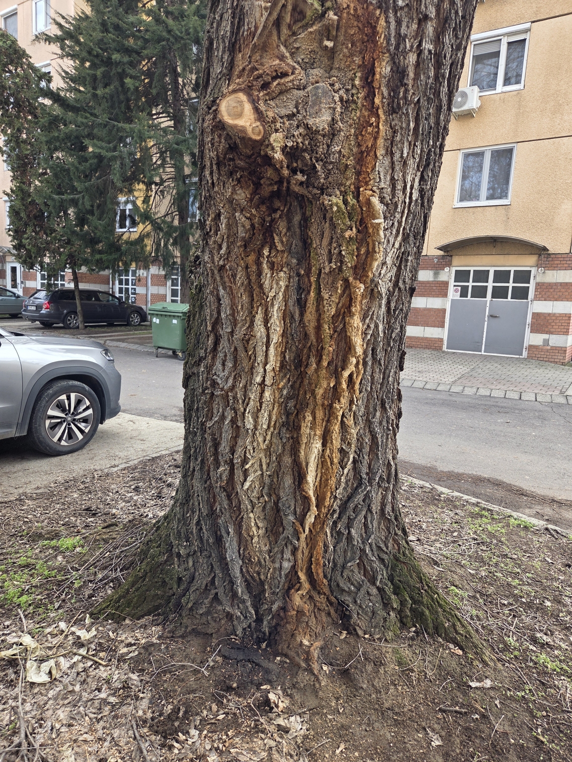 Szeretném a figyelmükbe ajánlani a Kossuth Lajos sgt. 105. ház mögött (a zöldterület sarkánál) álló közterületi fát. A törzsén erős váladékozás (nyálkafolyás) látható, illetve a kéreg alatt korhadás észlelhető.