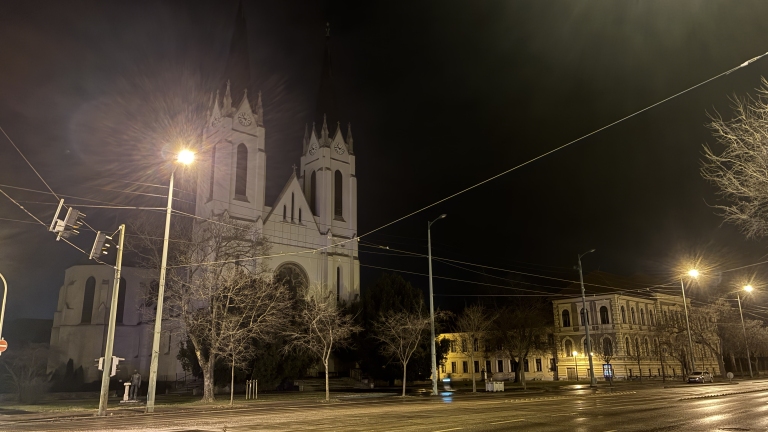 Kiégtek a lámpák a Rókusi templom előtt.