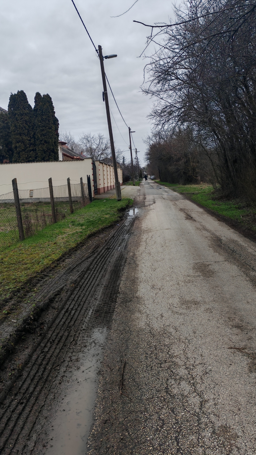 Szeged (6726) Kürü sor (Fő fasor felöl) az úttestre belógó faágak, bokrok oldalhajtásai miatt a keskeny aszfaltról letérve, az út melletti zöldterületre ráhajtva kénytelenek közlekedni a nagyobb teherautók, konkrétan a kukásautó. Emiatt az aszfalt melletti zőldterület állapota igencsak megromlott. Javasolnám a faágak szakszerű metszését, és a susnyás kezelését.