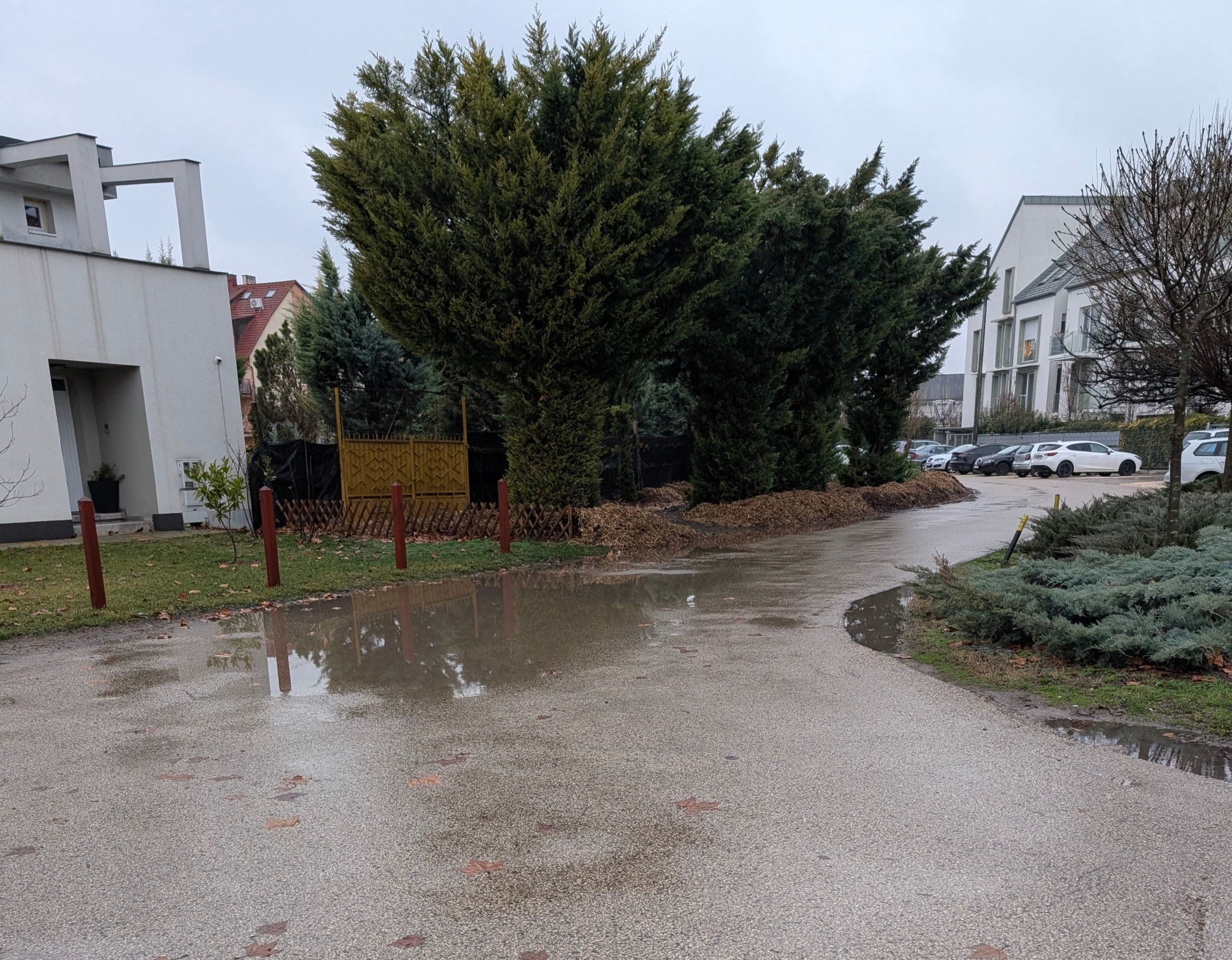 Esőzés után áll a víz az úton