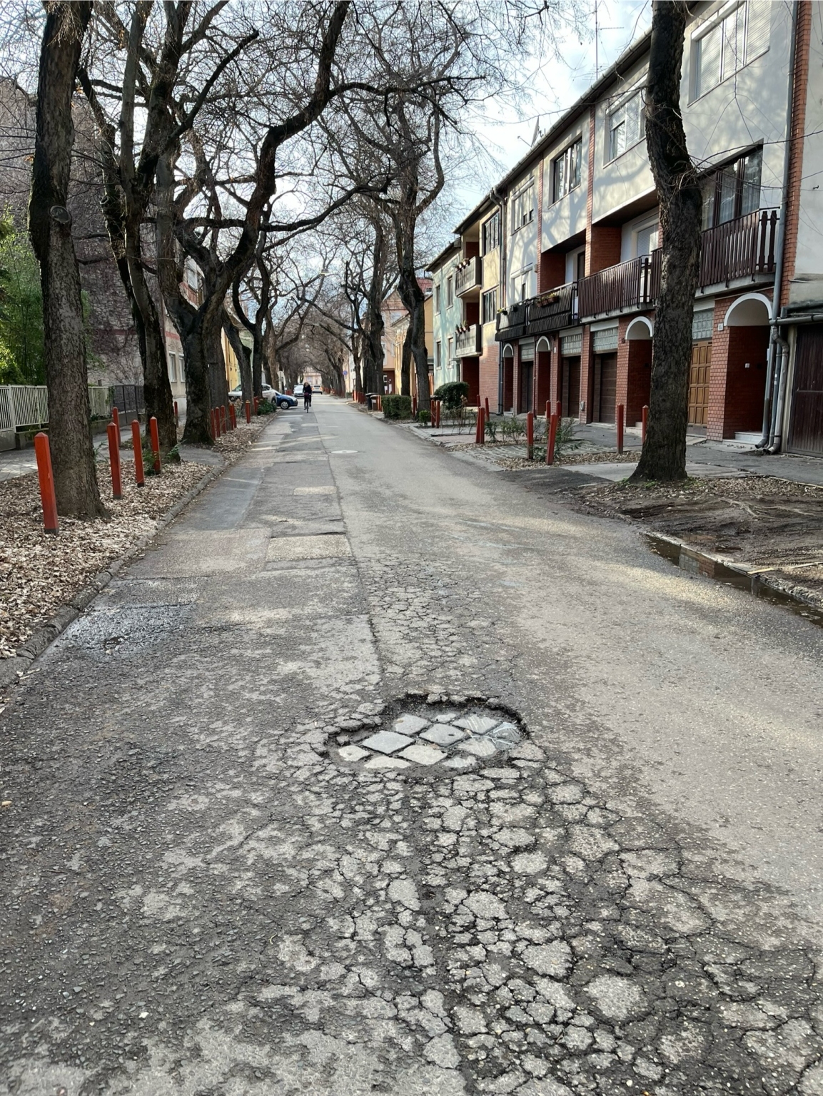 A Lengyel utca 13. előtt nagy felületen kátyúsodik az út, emiatt ki is látszik a régi macskaköves út. Mivel az aszfalt nagyon nagy felületen van széttöredezve, várhatóan tovább fog kátyúsodni az egész.