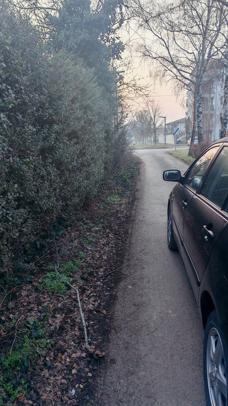 Szegeden (6726 Újszeged) a Pipiske utc Fülemüle utca felöli végén az uttestre belógó ágak karistolján a járműveket és csapkodják a kerékpárosokat. Az utca egyirányú, éppen ki lehet kerülni, de minden évben egyre beljebb húzodik a susnya, az űrszelvény szakszerű szélesítése időszerű lenne.