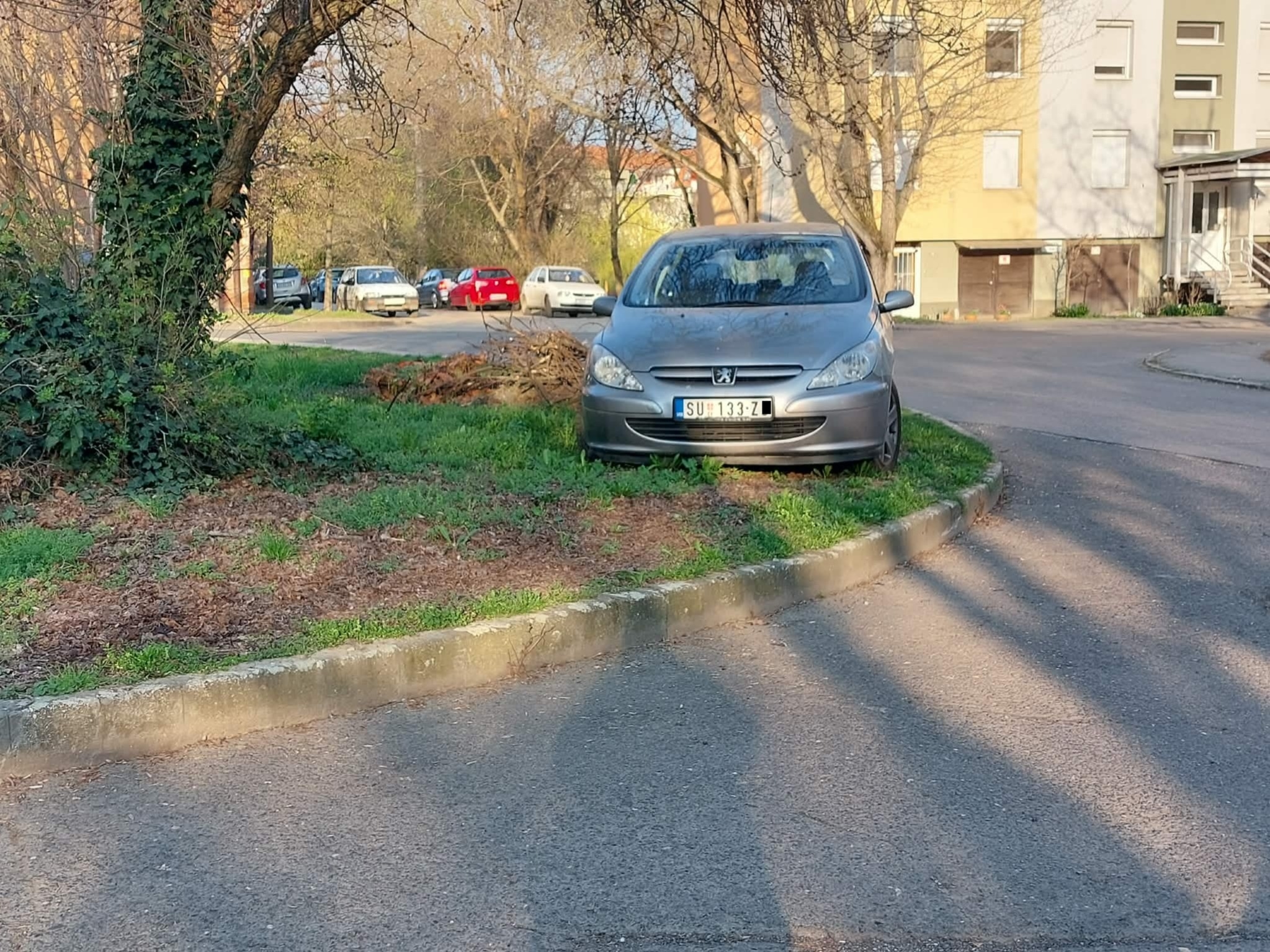 Szokásos zöld területen parkolás... korábban már kértünk ide is fa karókat. Nincs elég parkolóhely a környéken - a megoldás új parkolóhelyek létrehozása lenne!