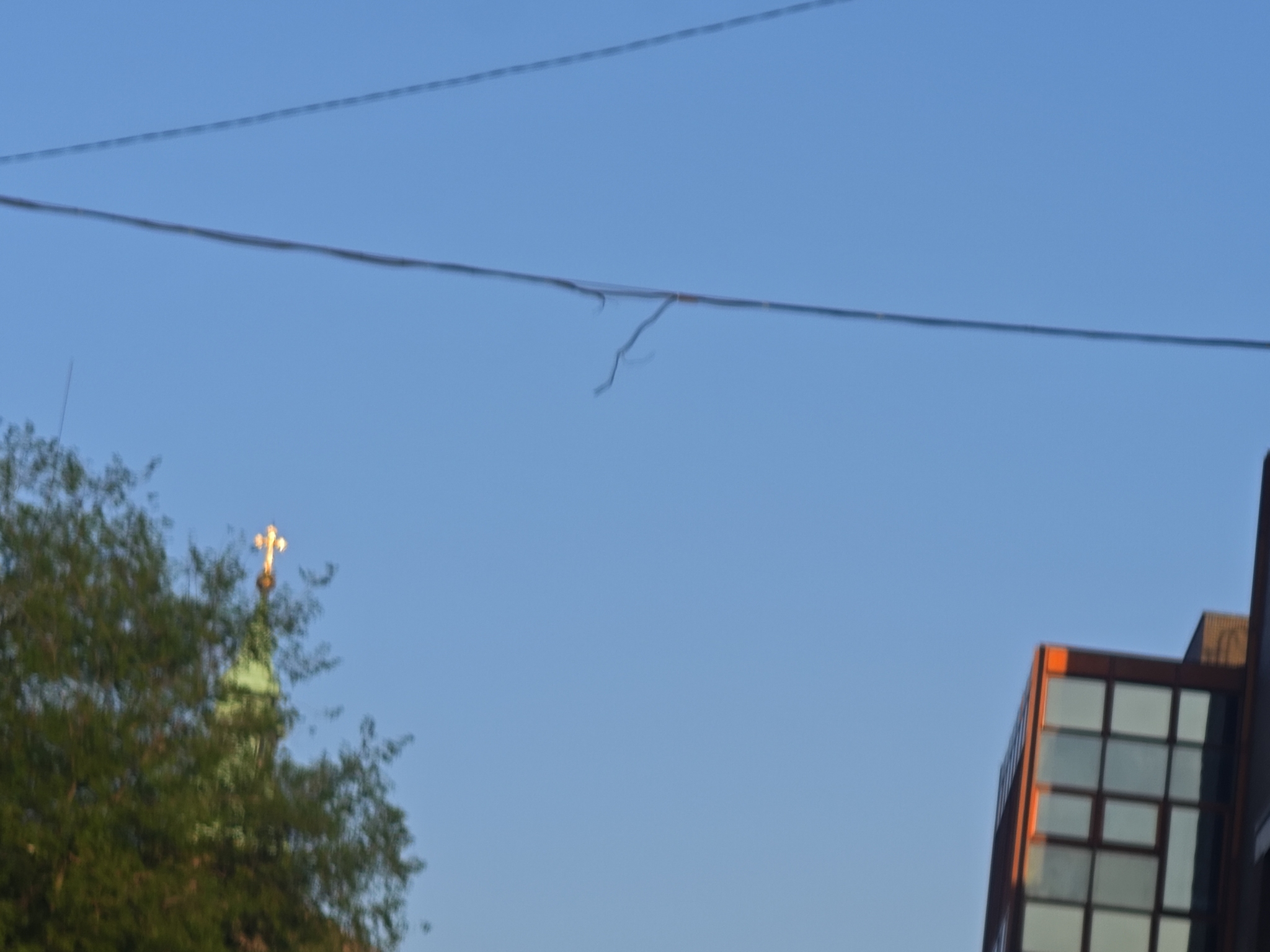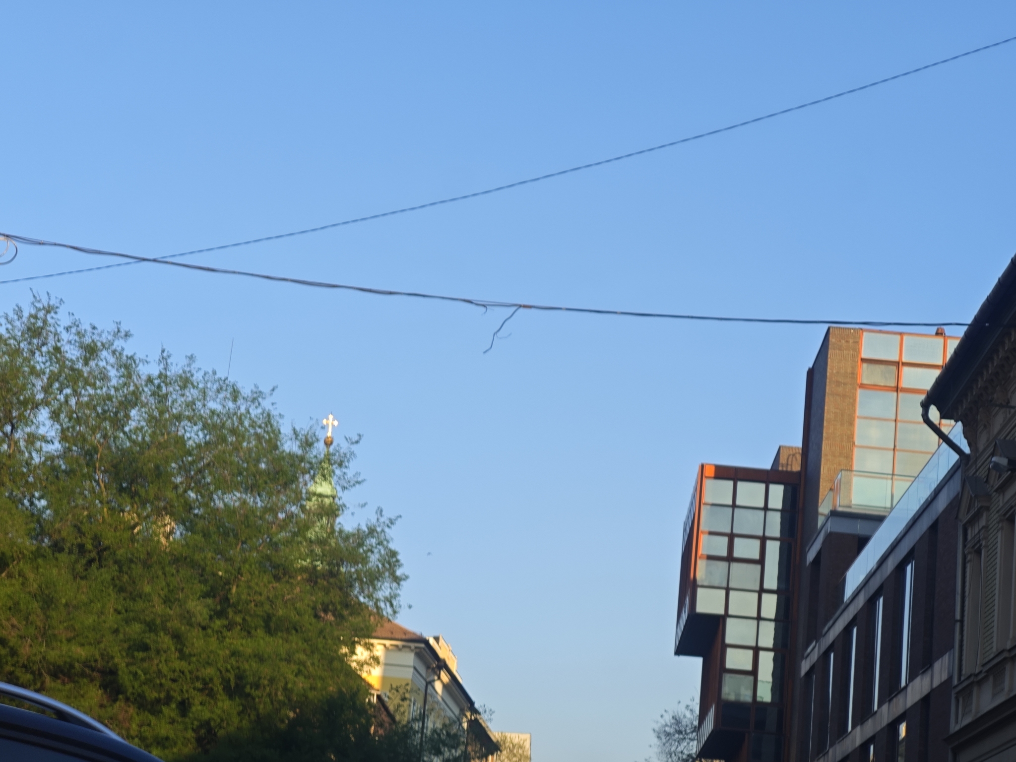 A két ház között (Somogyi utca 18 és 13 között) elektromosnak tűnő vezeték szakadása vagy kezdődő szakadása látszik.
