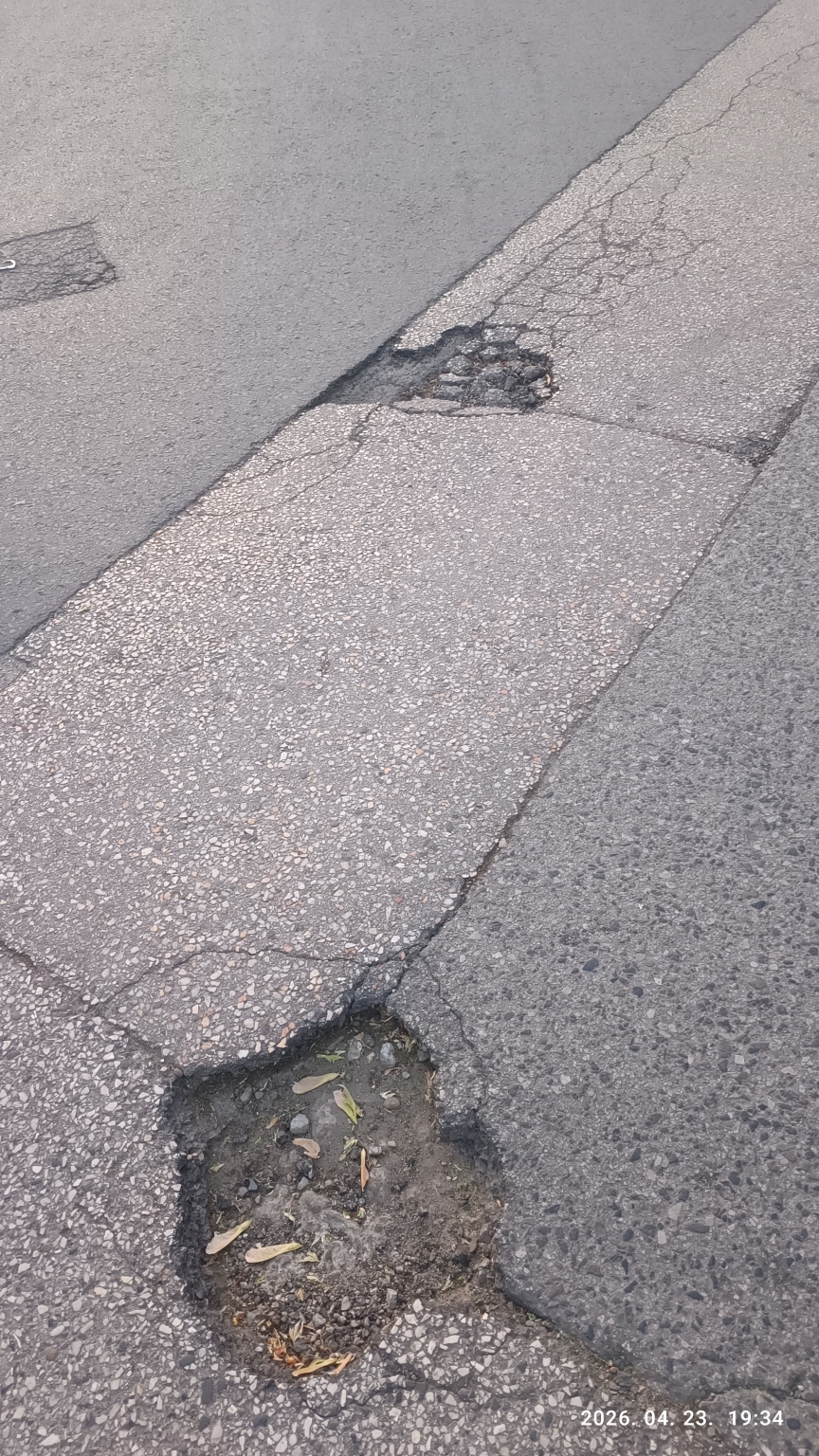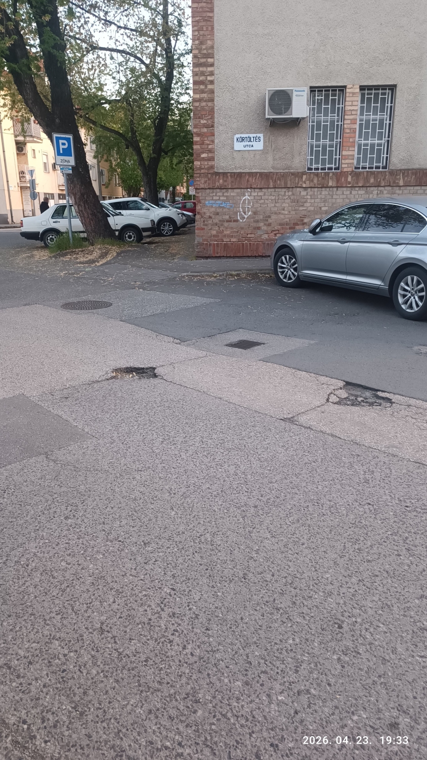 Kátyúk találhatóak a Jakab Lajos utca - Körtöltés utca kereszteződésében.