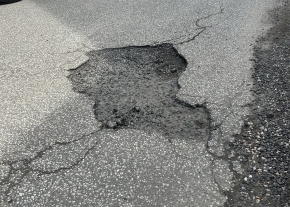 Szeged, Napos út Béketelepi iskola és óvoda előtti autóbusz megállóban a járda vízben áll, repedezett. Babakocsival a felszállás nem akadálymentes. Nincs semmilyen eső elleni beálló.