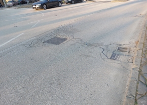 Felújítás során rosszul tették vissza a esővíz elvezető rácsot.Az öntvény bordái menetiránnyal megegyezően futnak.