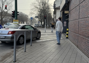 Kérem a forgalomtechnikai szakembereket, hogy állítsák helyre ezt a megdőlt oszlopot!