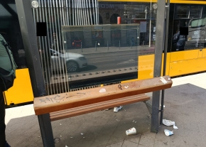 Szeged, Rózsa utcai (a sarki zöldségesnél levő) villamosmegálló falát betörték.