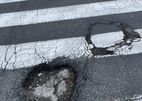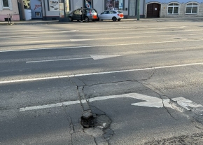 Kátyú van az Osztrovszky utca 25 sz. ház előtt a járdán és az egész autóbehajtó aszfaltja eléggé töredezett. Sötétben könnyen felbukik bárki.